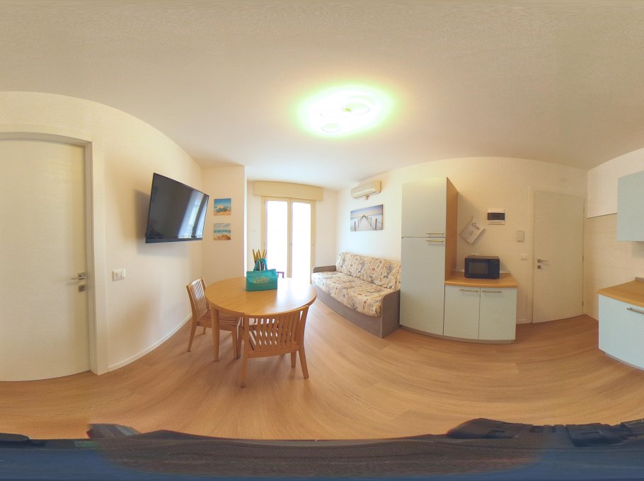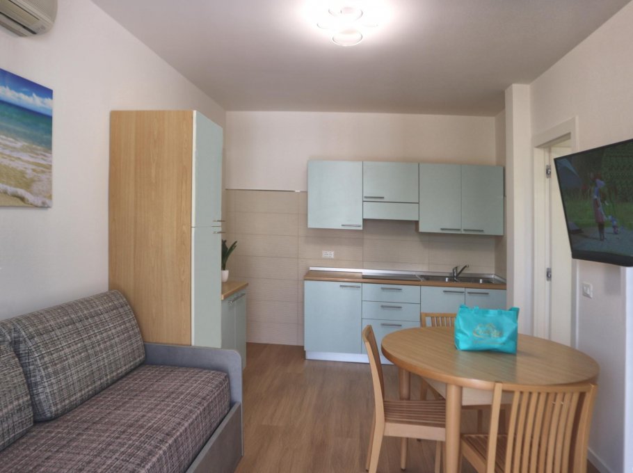 One bedroom apartment with living/dining room, sofa-bed and kitchenette, tv and microwave, one double-bedded room, shower box/bidet/wc and two balconies of which one is furnished with table and chairs. Air conditioning, wi-fi and final cleaning are included in the price. In the rental rules of the agency are mentioned all the above written service’s ways. Parking place size: 4,10x2,75x1,70