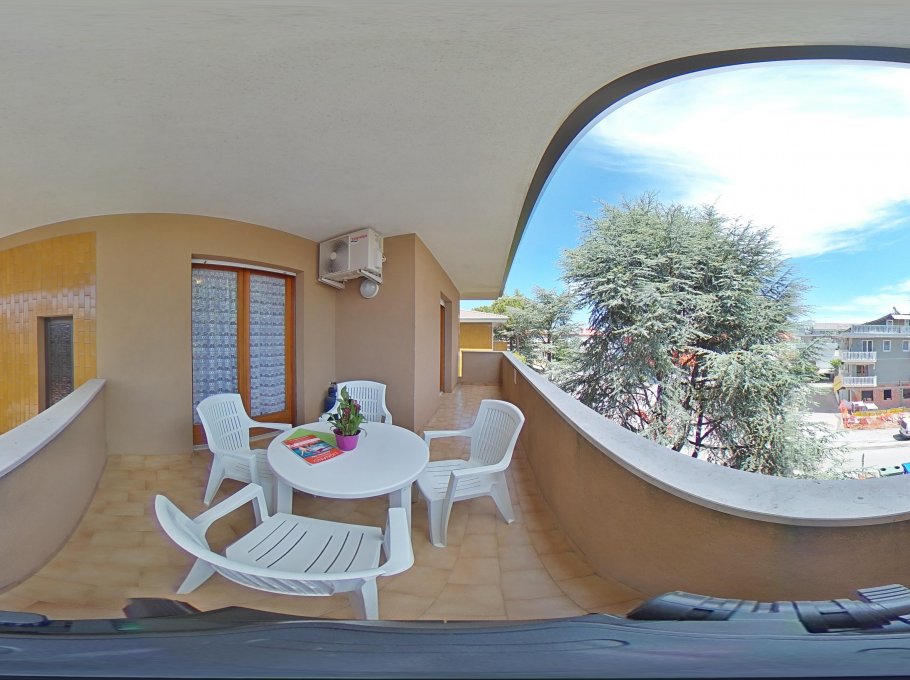 Attractive two-rooms apartment consisting of living/dining room with double sofa-bed and kitchenette, tv and microwave, double bedded room, shower box/bidet/wc and spacious terrace with table and chairs. Reserved parking space in another residence around 200 meters far away from Carinzia. Air conditioning, wi-fi and final cleaning are included in the price. In the rental rules of the agency are mentioned all the above written service’s ways. Parking place size: 5,00x2,20x3,00
