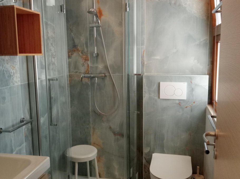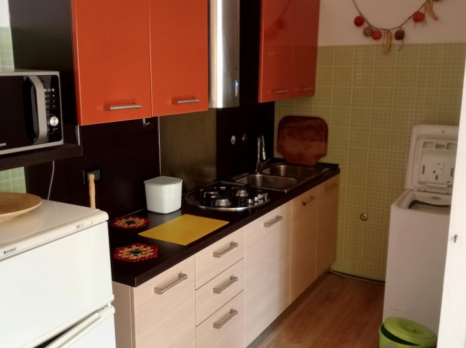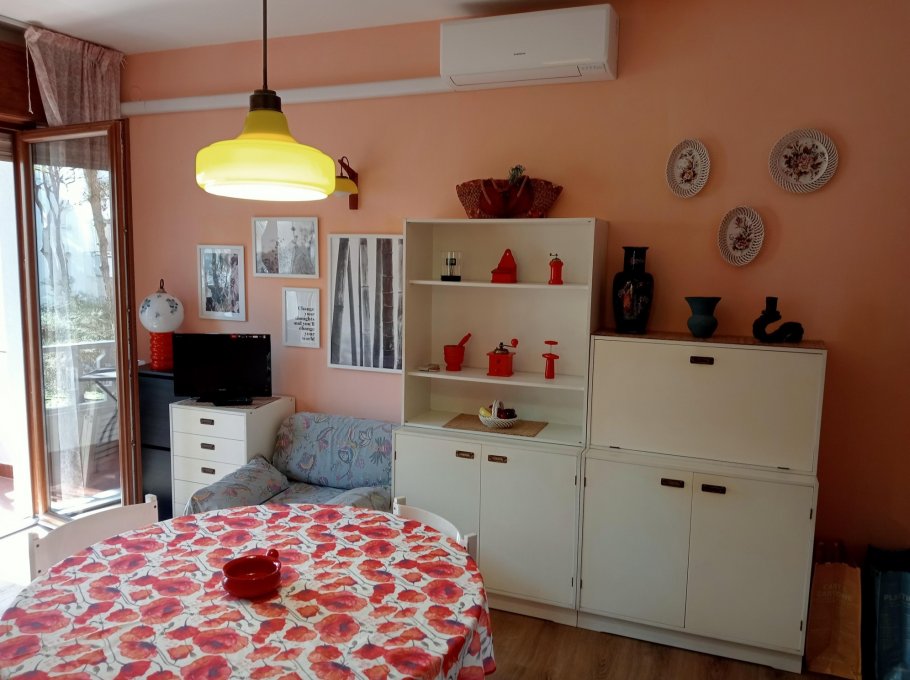 Apartment composed by: one double bedroom, one bedroom with two beds, living room with sofa, kitchen, bathroom with shower, terrace, parking place, air conditioned (extra), 2^ floor.