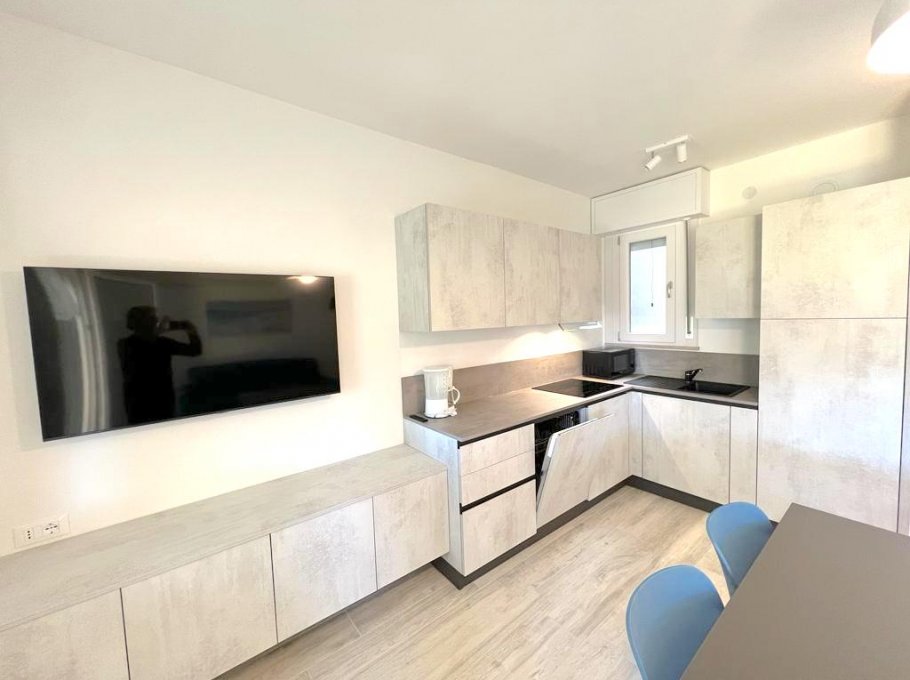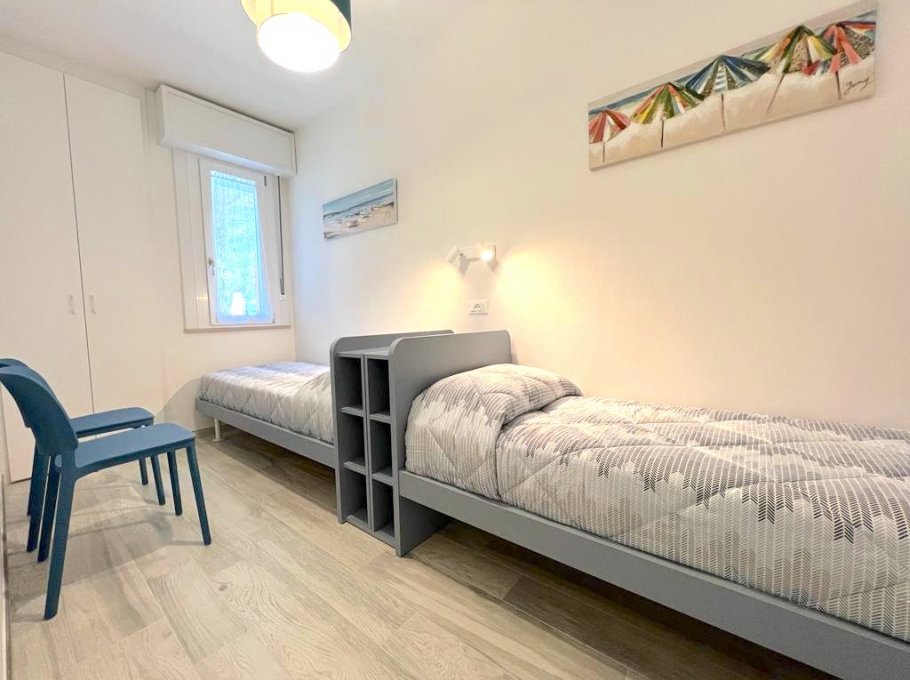 Recently renovated first-floor apartment with living room with double sofa bed, kitchenette, double bedroom, 1 bedroom with 2 single beds, windowed bathroom with shower stall, terrace, 1 carport (sleeps 4/6). Television, air conditioning.washing machine ,dishwasher 1 umbrella and 2 sunbeds on the beach included