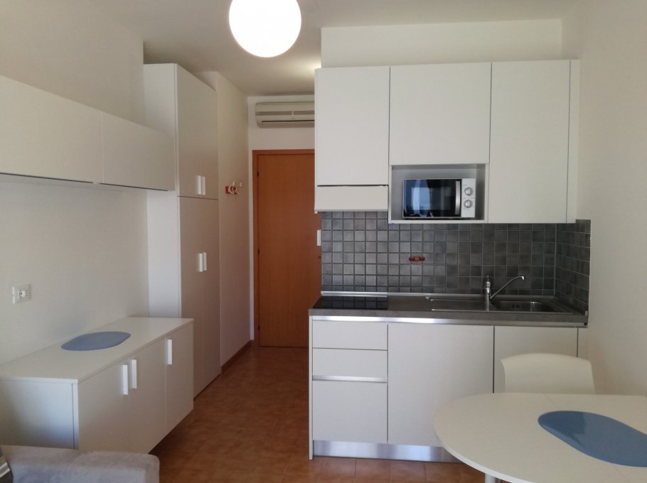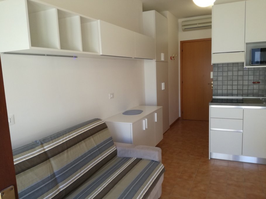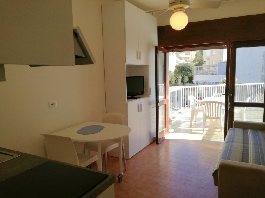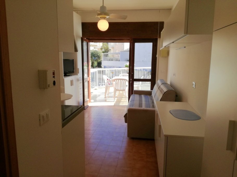 Apartment situated in centre of Sabbiadoro only 80 m from the beach, composed of one living room with kitchenette, double bed sofa, big terrace, air conditioning, tv. New furnishing.