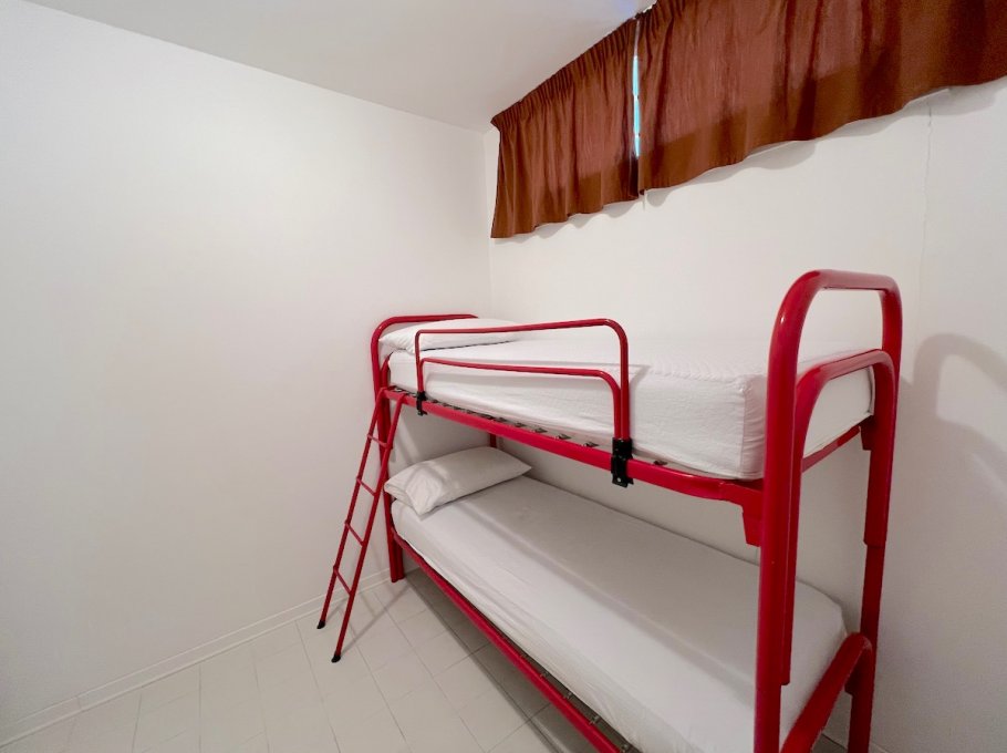 Large apartment on the first and last floor with living room / kitchen with access to the large terrace large terrace of about 20 square meters, 1 double bedroom, 1 bedroom with 2 single beds, 1 bedroom with 1 bunk bed, 2 bathrooms with shower, the use of a parasol and 2 sunbeds on the beach condominium parking space (4/6 beds).