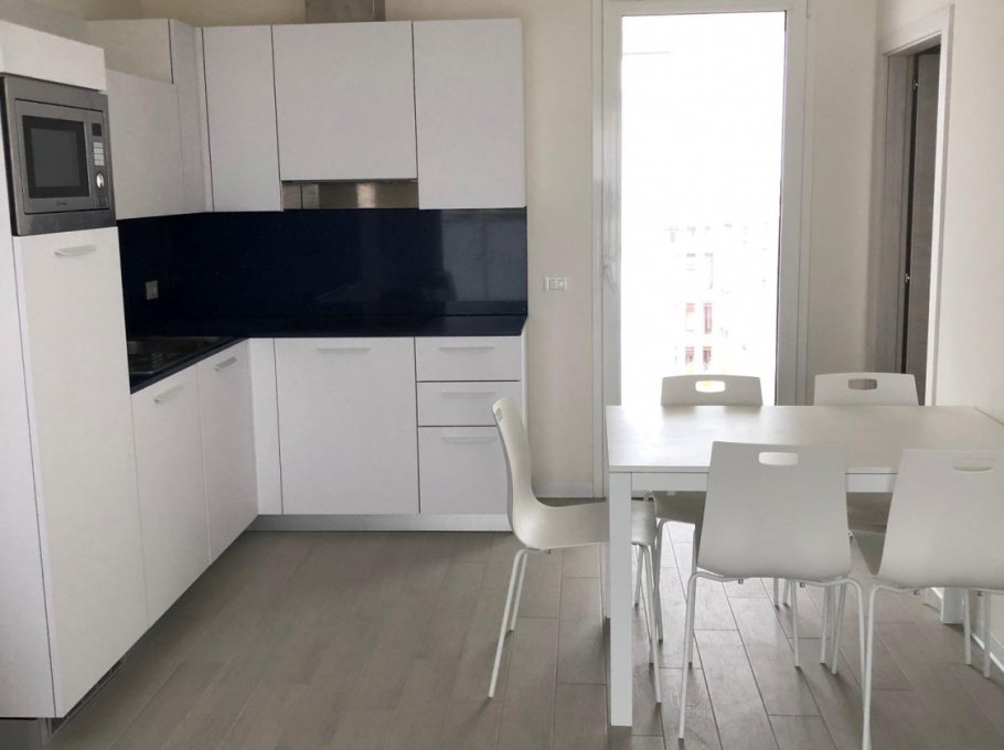 New three-room apartment with modern furnishings on the 6th floor with lift, consisting of 2 double bedrooms, living room with sofa bed for 2 people, kitchen with dishwasher, microwave, fridge with freezer, induction hob, 2 bathrooms with shower / WC / bidet, 2 large and habitable balconies, washing machine, TV, safe, air conditioning, WiFi, numbered parking space, solarium terrace for exclusive use on the top floor of the building.