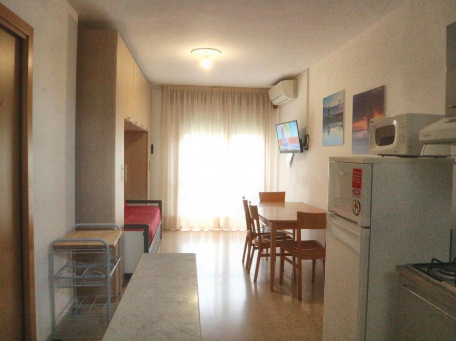 Studio apartment consisting of cooking area and double sofa-bed, tv and microwave, shower-box/bidet/wc and furnished balcony. Parking space at the "Junior parking lot" within walking distance from the residence. Air conditioning, wi-fi and final cleaning are included in the price. In the rental rules of the agency are mentioned all the above written service’s ways.