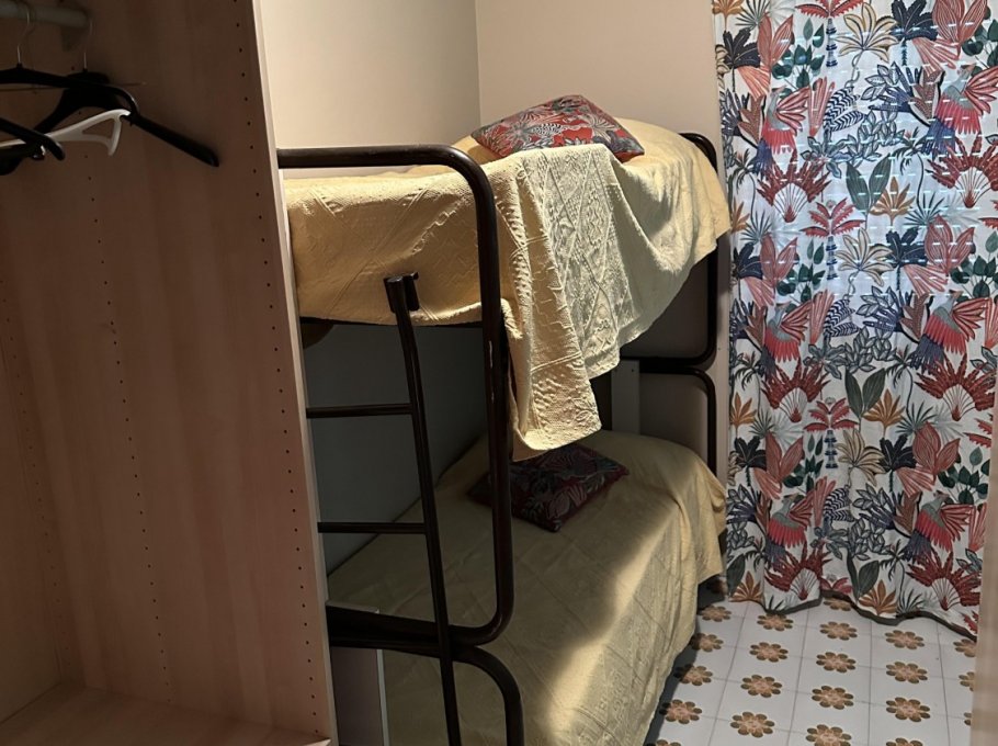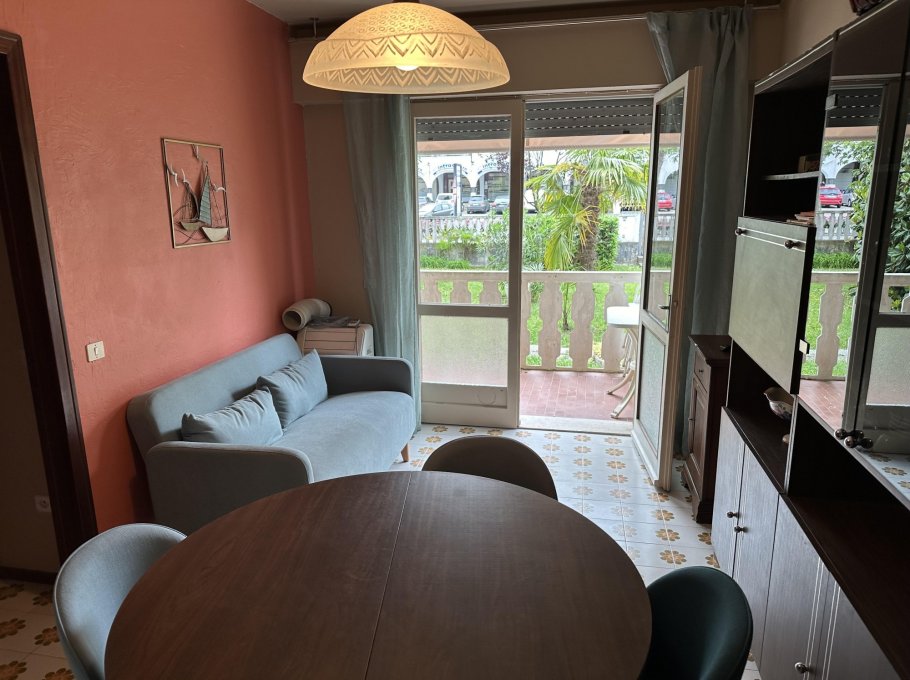 Apartment in Lignano Sabbiadoro composed by: one double bedroom, one bedroom with bunk bed, living room, kitchen, bathroom with shower, terrace, groound floor, parking place, garden.