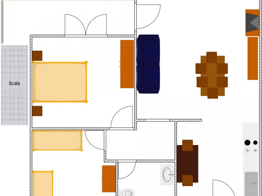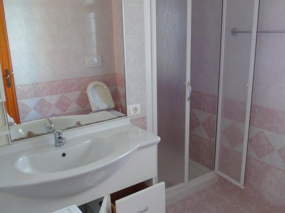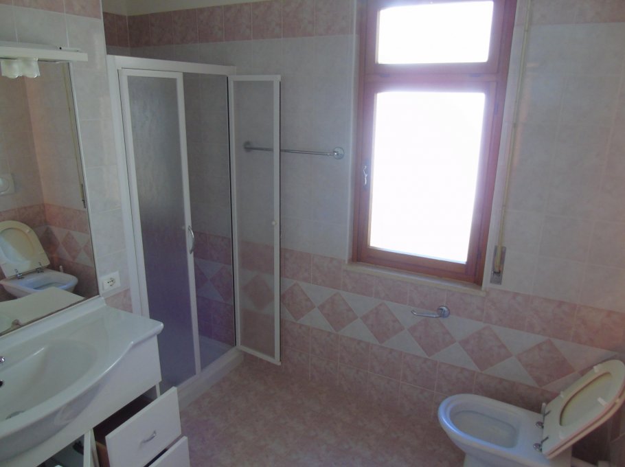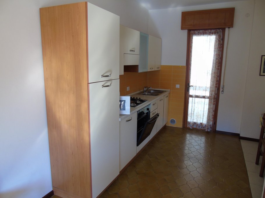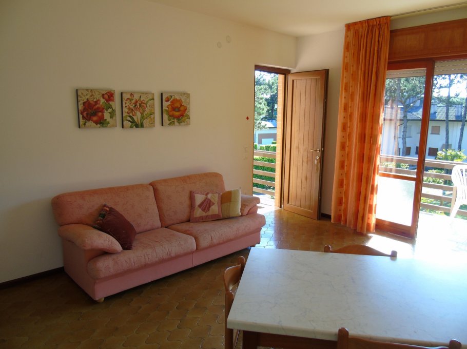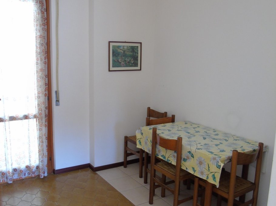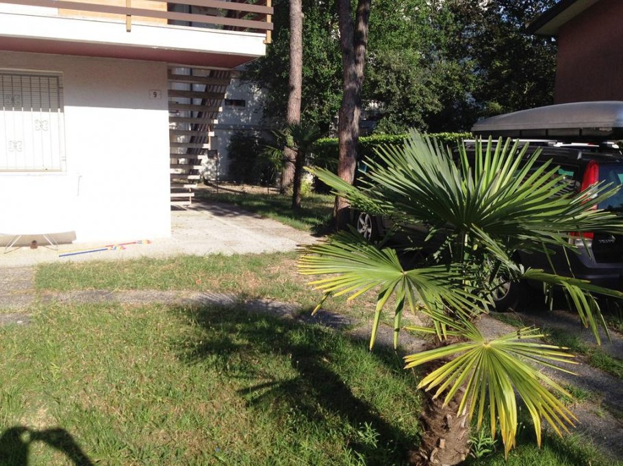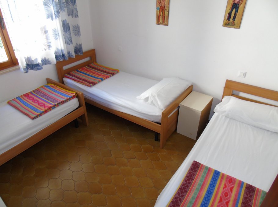 Flat with one duble bedroom, one room with 3 beds, living-room with divan, Tv, kitchen, bathhroom wirh shower, balcony, 1° floor, parking and garden.