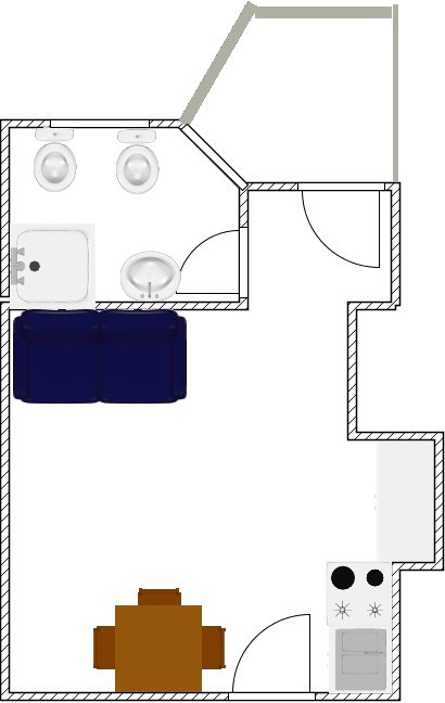 Studio composed by livingroom with two beds, kitchen, bathroom with box shower, parking, terrace, 2° floor, air conditioning (extra the use).