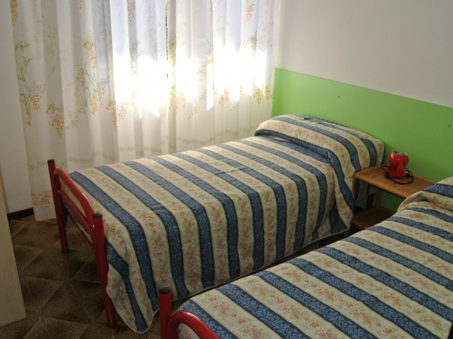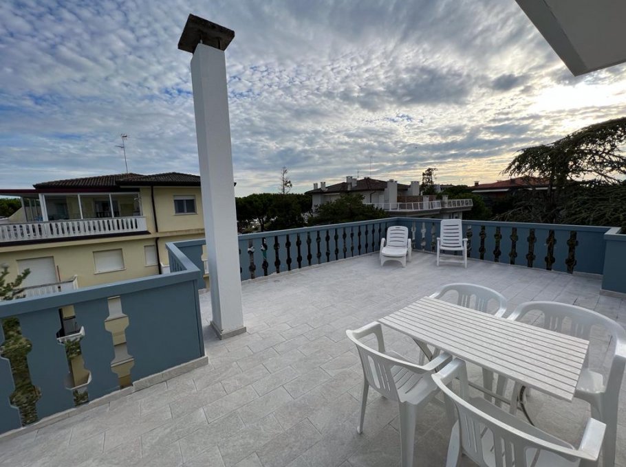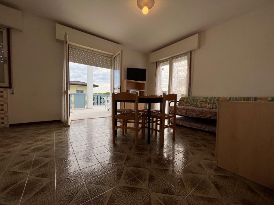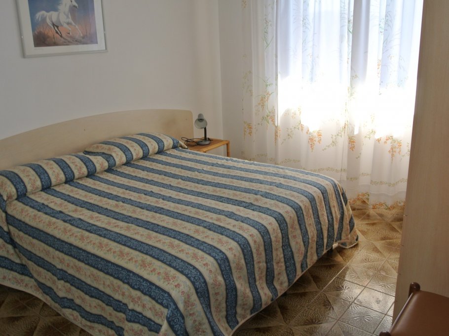 Apartment in quiet area, 300 mt. from the sea with private garden and parking. Apartment well furnished with plenty of space on the top floor with large terrace solarium, living room with kitchenette and double sofa bed, double bedroom, twin bedroom and bathroom with shower. Washing machine in shared use, WIFI, microwave and air conditioning (extra price)
