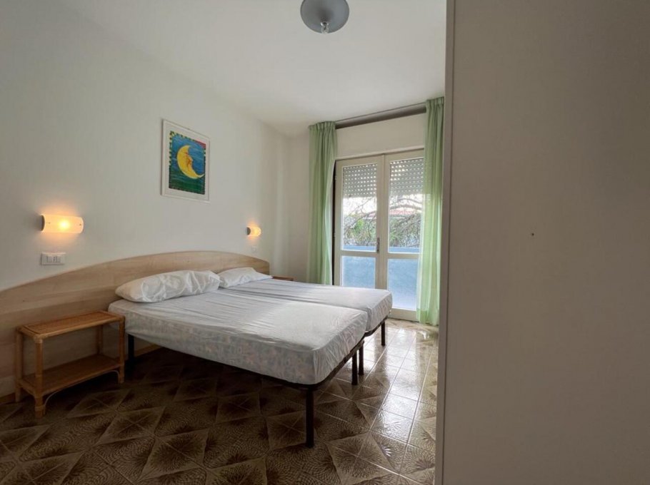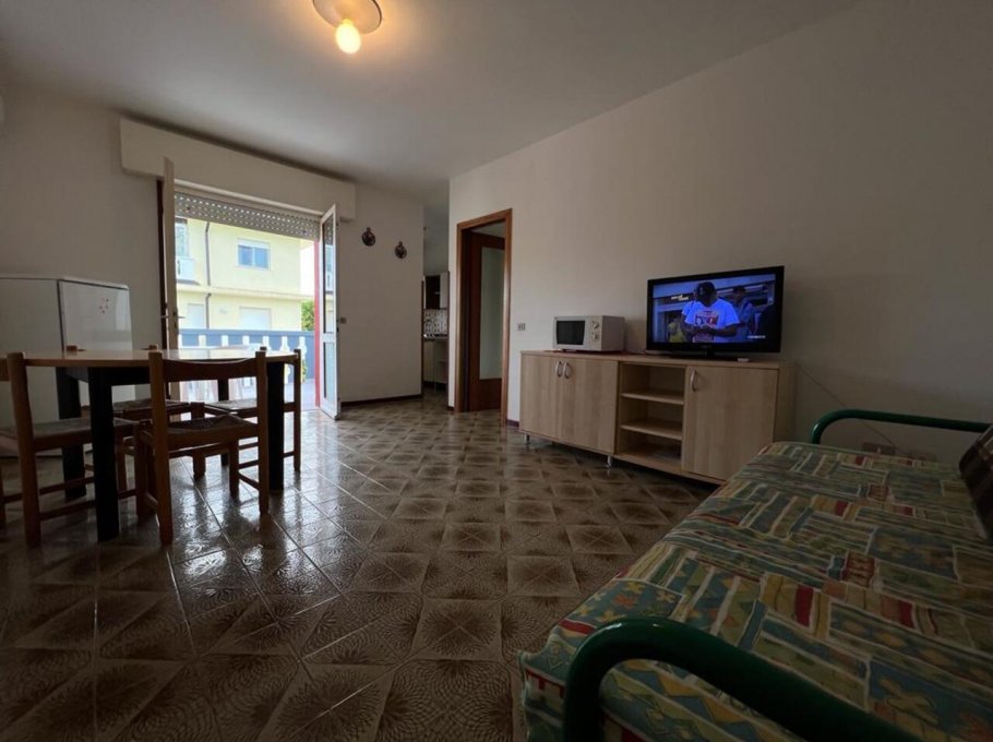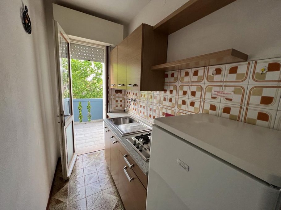 Apartment in quiet area, 300 mt. from the sea with private garden and parking. Well furnished apartment with spacious living room with kitchenette and double sofa bed, double bedroom and bathroom with shower. Terrace with table and chairs. Washing machine in shared use, microwave, WIFI and air conditioning (extra price)