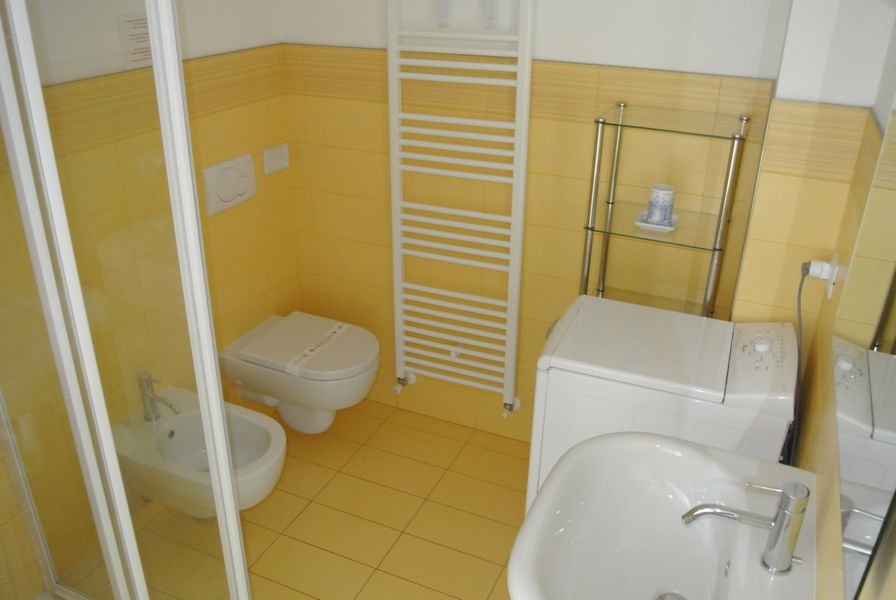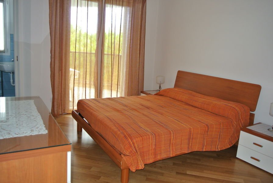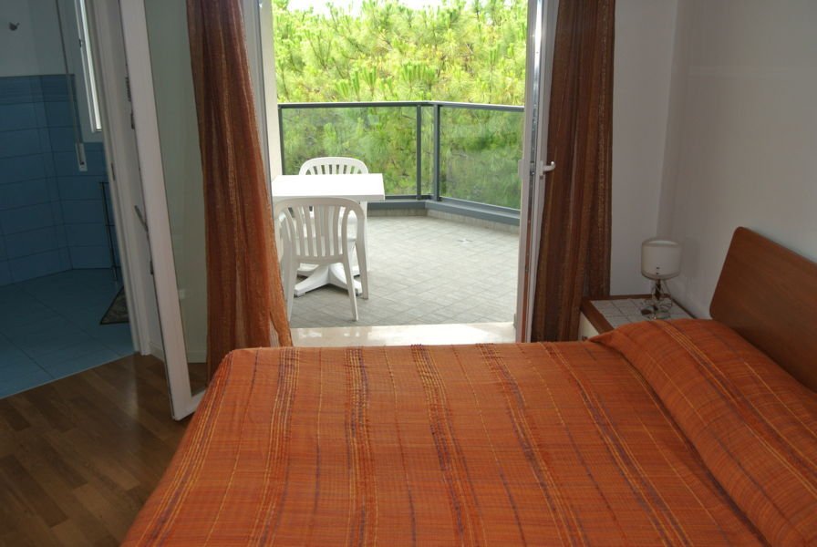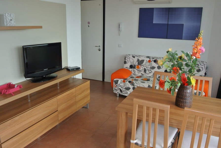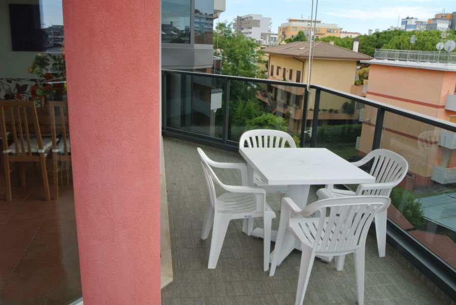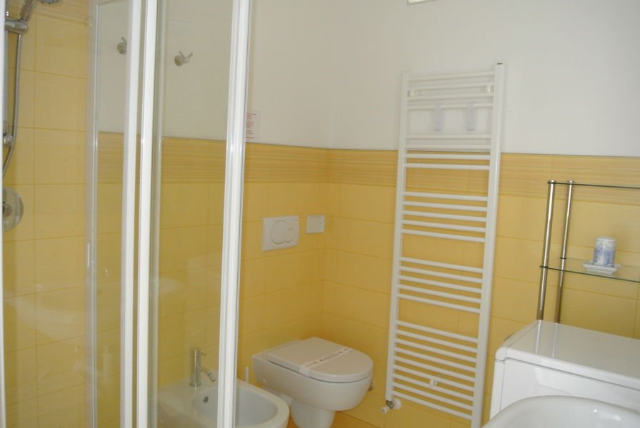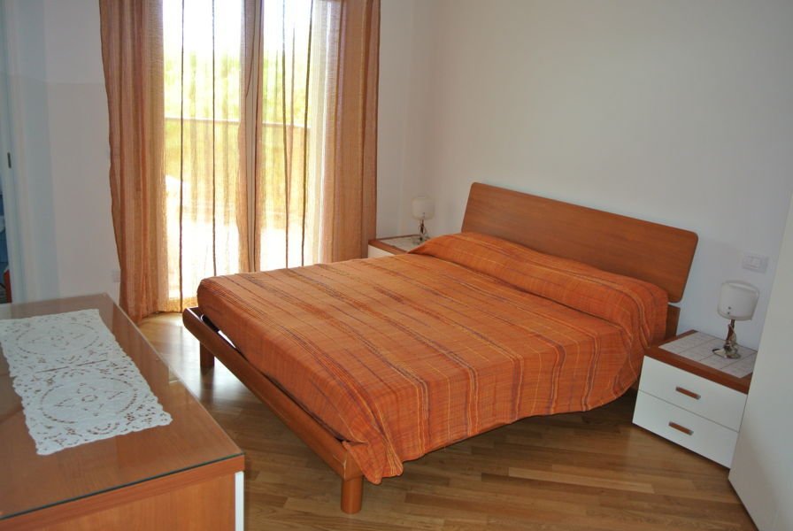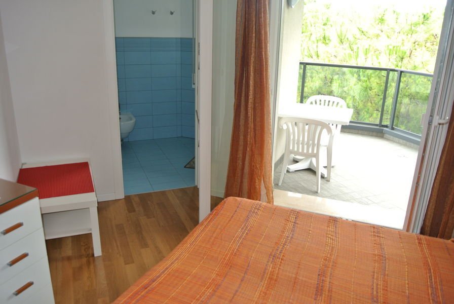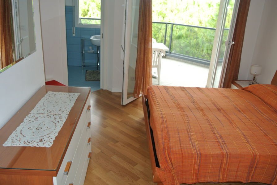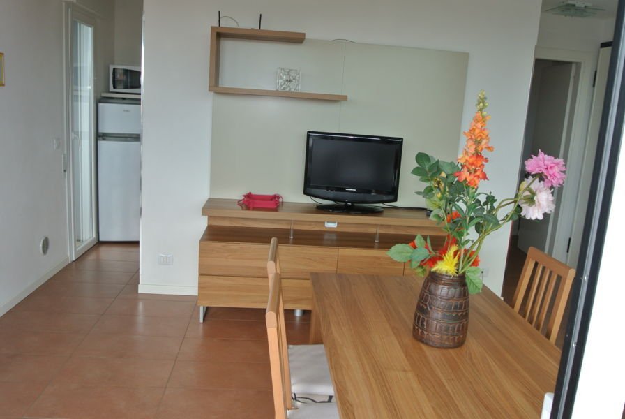 The apartment is at 3° floor and consists of living room with sofa bed and separate kitchenette, large terrace with table and chairs, a windowed bathroom with shower, twin bedroom, double bedroom with private bath and balcony. Door, washing machine and dishwasher, microwave oven, satellite TV, safe, air conditioning. Lift. WIFI
