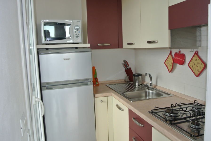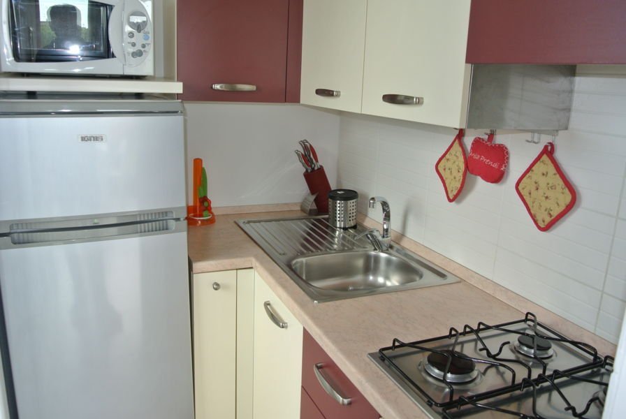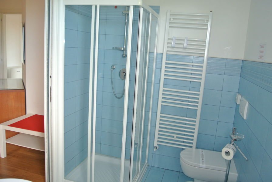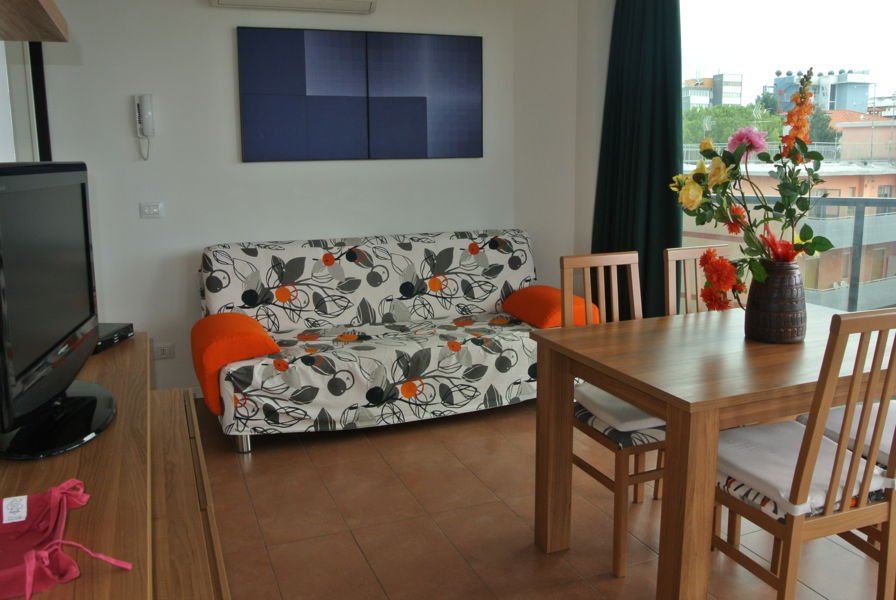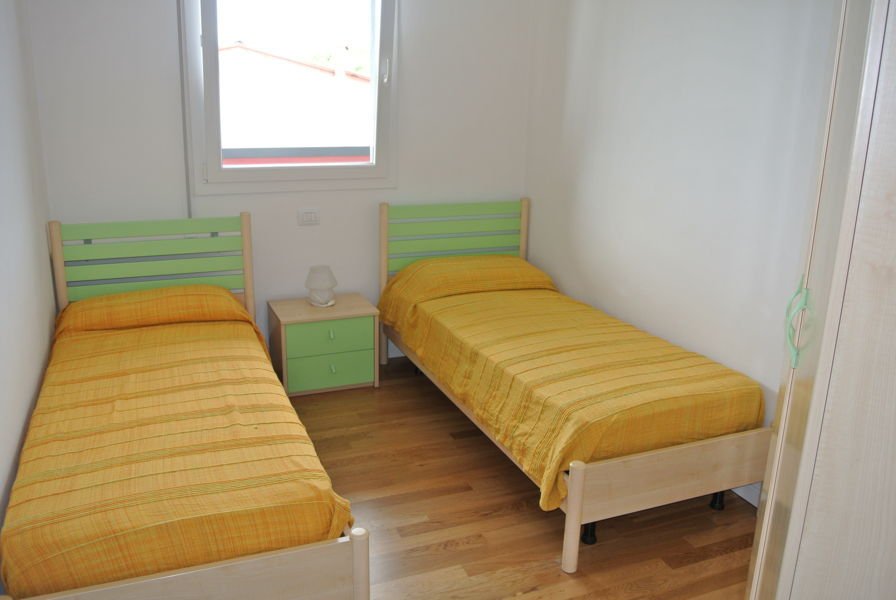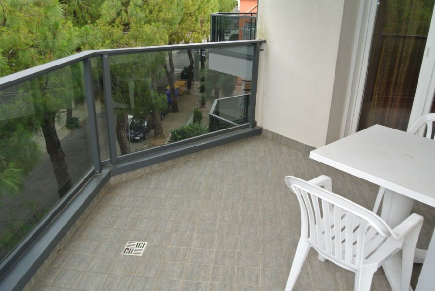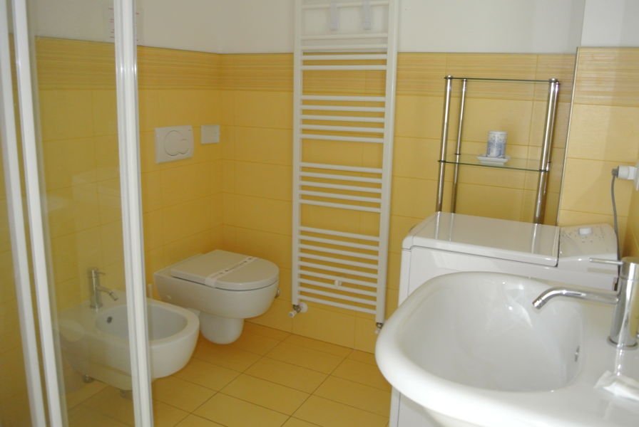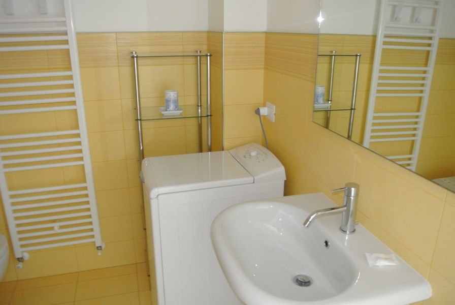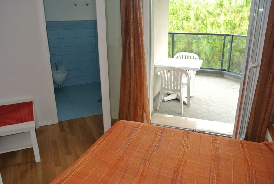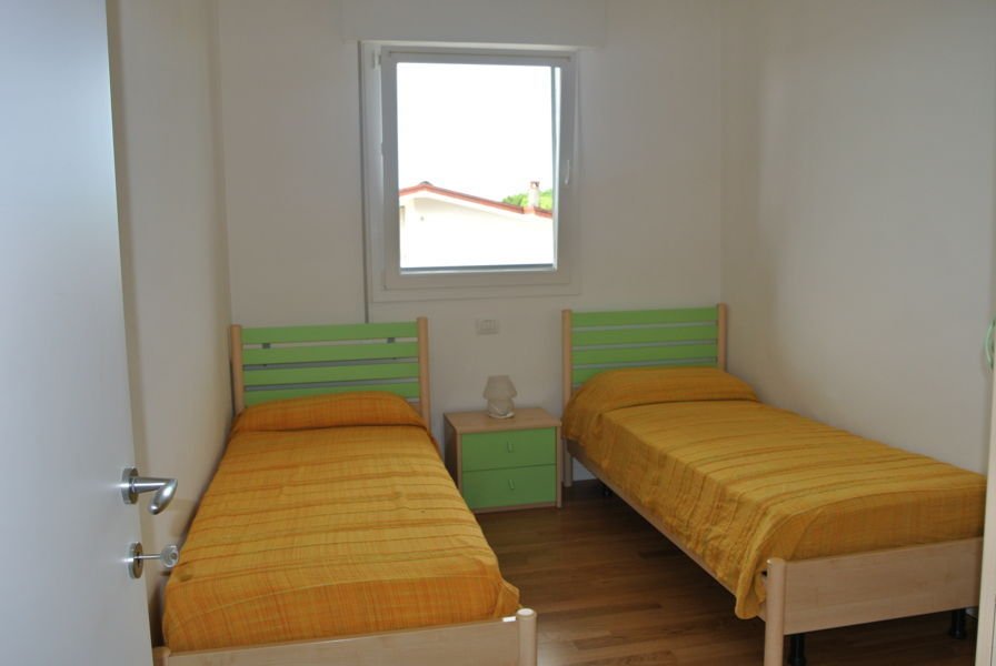 The apartment is at 3° floor and consists of living room with sofa bed and separate kitchenette, large terrace with table and chairs, a windowed bathroom with shower, twin bedroom, double bedroom with private bath and balcony. Door, washing machine and dishwasher, microwave oven, satellite TV, safe, air conditioning. Lift. WIFI