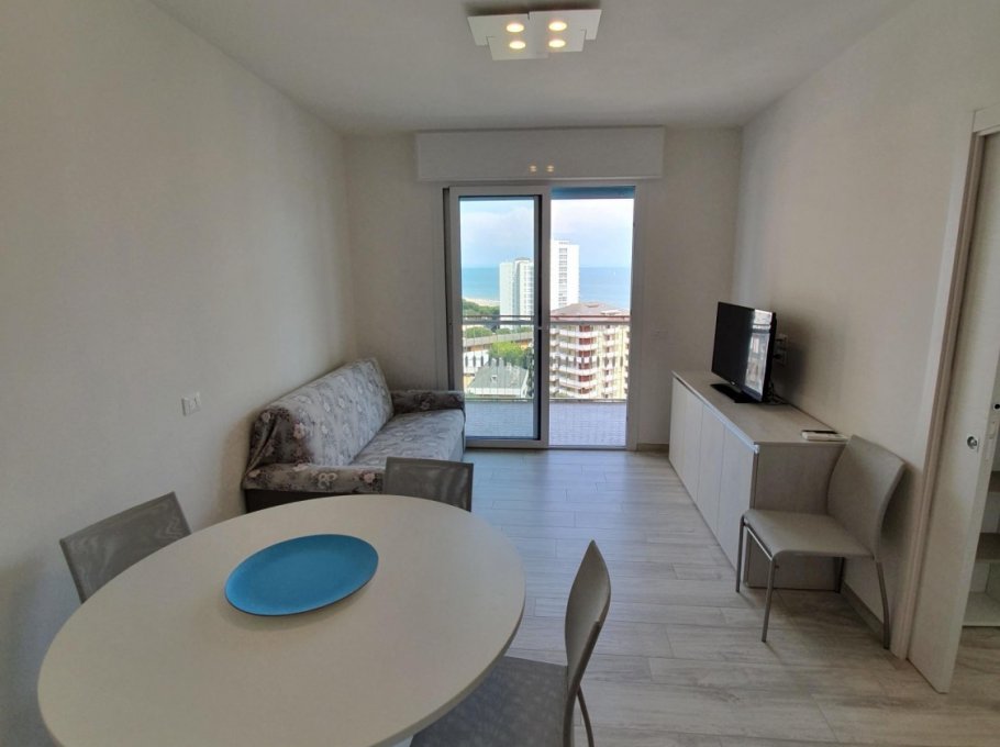 The apartment is at La Duna Residence which is located at the beach promenade, about 800 mt. from the center of Lignano Sabbiadoro with pool. The apartment is on the 10° floor and is composed with 1 sleepingroom with 3 beds, livingroom with TV and double bedcouch, kitchen, bathroom with shower-box, balcony with frontal seaview and private-parking. It's all new renovated with air conditioning, waschingmaschine and dishwascher.