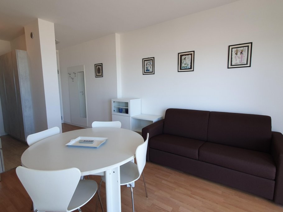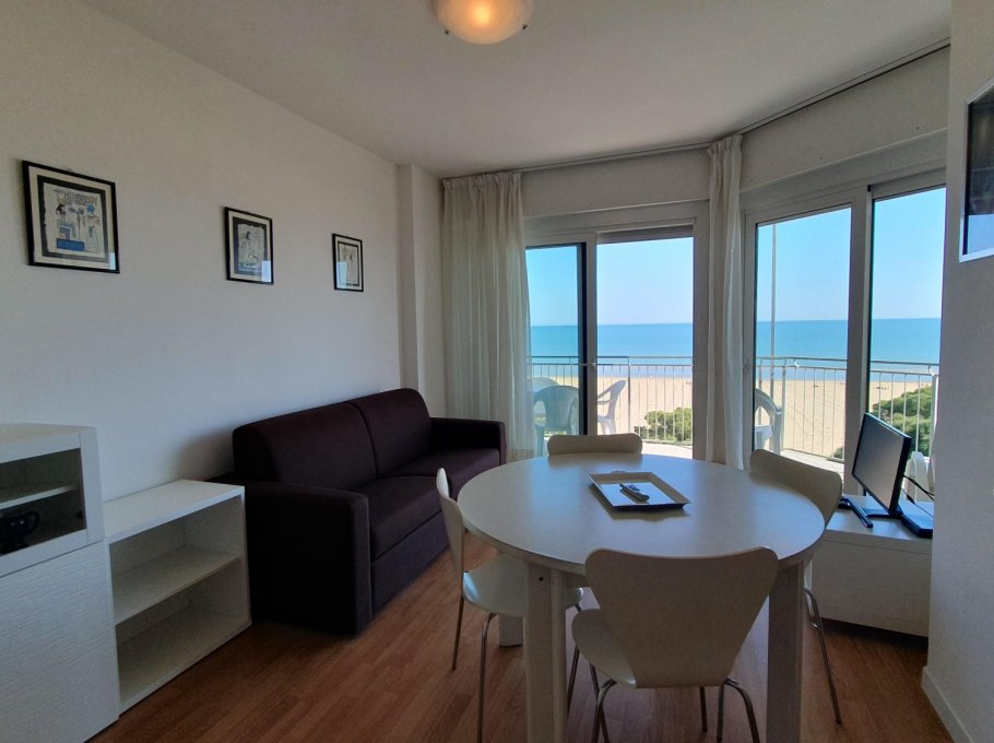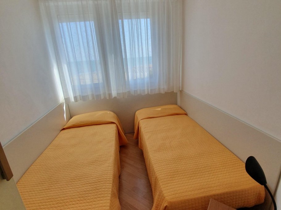 The apartment is at Residence La Zattera which is located at the beach promenade, near to the center of Lignano Sabbiadoro. This House have a small garden, 2 lift and private-parking. The apartment is on 5° floor. The apartment is renovated and is composed with 1 sleepingroom with 1 doublebed, 1 sleepingroom with 2 single beds, livingroom with double bedcouch, kitchen, renovated bathroom with showerbox, balcony with frontal seawiew and TV. Air conditioning end waschingmaschine.