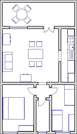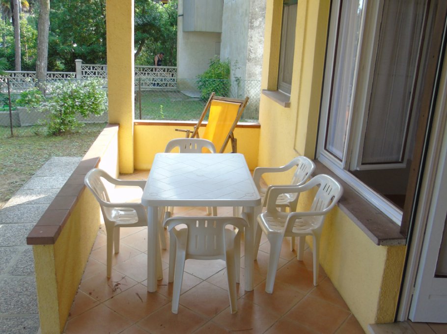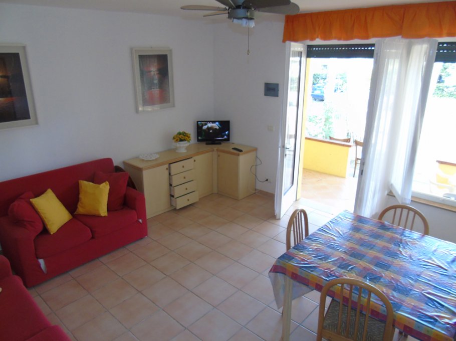 Flat composed by two double bedrooms, living-room with divan-bed, TV, kitchen,bathroom with shower, groundfloor, garden, parking.