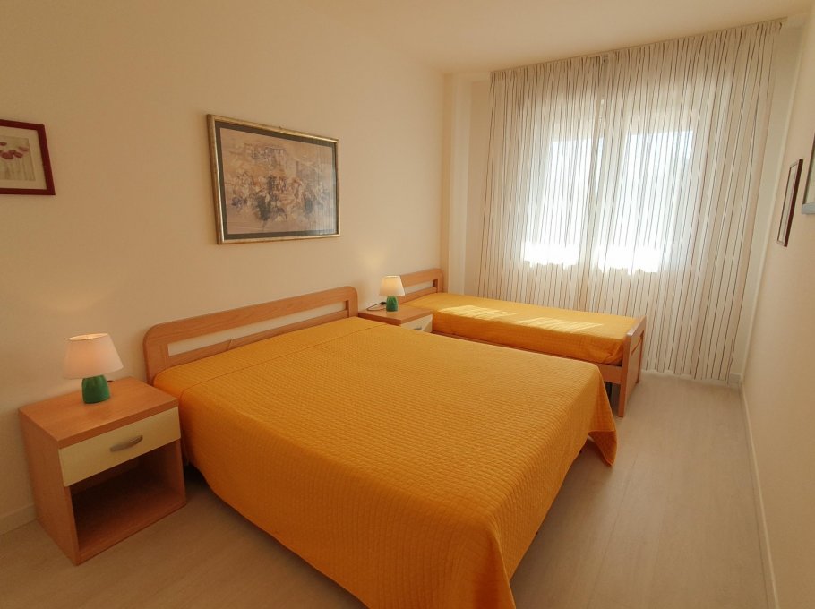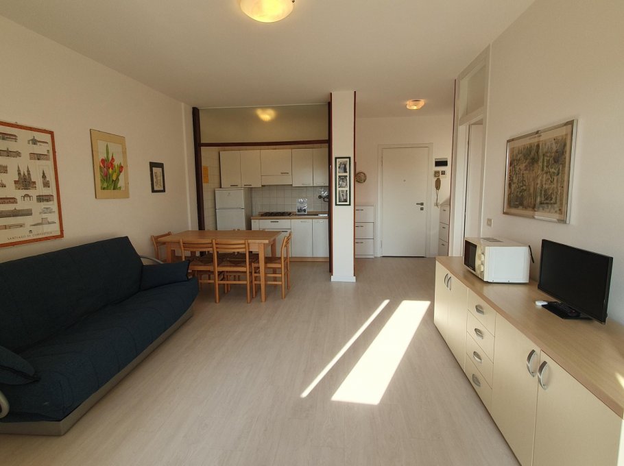 The apartment is at Luna Residence which is located at the beach promenade, near to the center of Lignano Sabbiadoro. On the ground floor of the residence are several shops, bars and restaurant. The apartment is on the 4° floor and is composed with 1 sleepingroom with 3 beds, 1 livingroom with double sleeping-couch, kitchen,renovated bathroom with showerbox, balcony with side seaview and private-parking. It’s renovated with TV, microwave, washingmaschine and air conditioning.