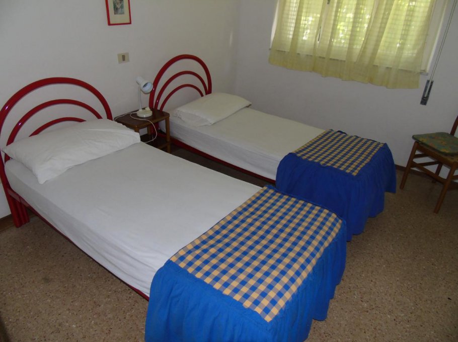 Apartment composed by one double bedroom, one bedroom with 2 beds, one bedroom with one bed, livingroom, kitchen, bathroom with shower, 1° floor with terrace, tv, garden, parking place, 700m to the beach.