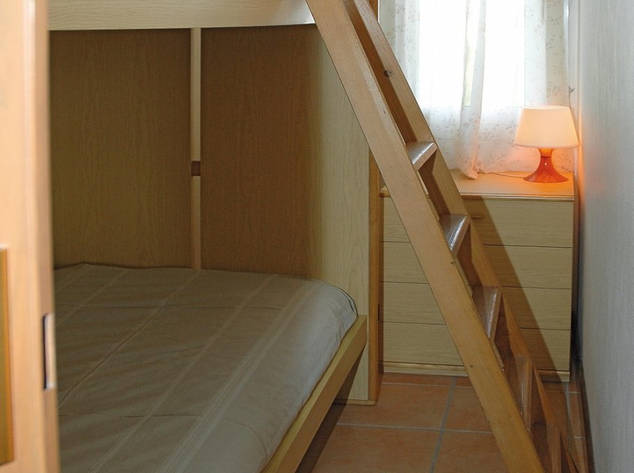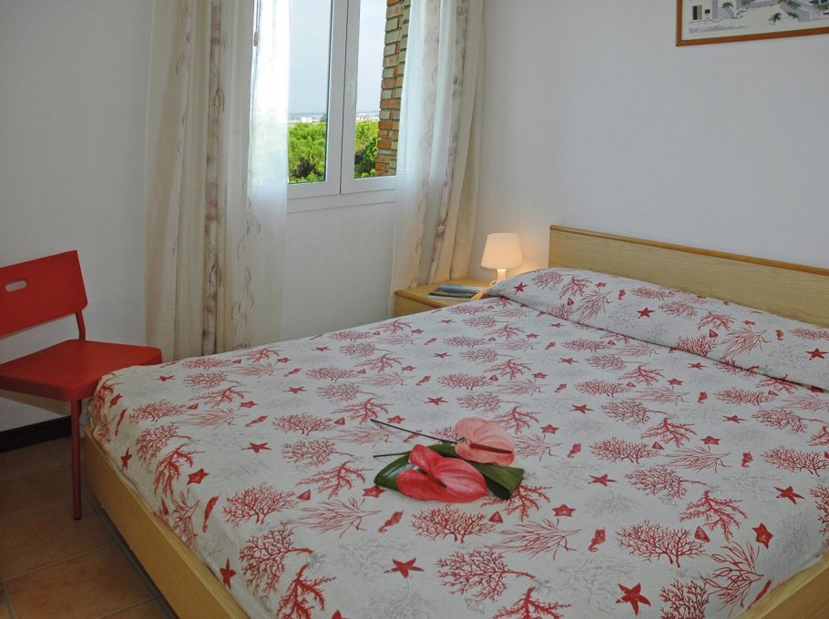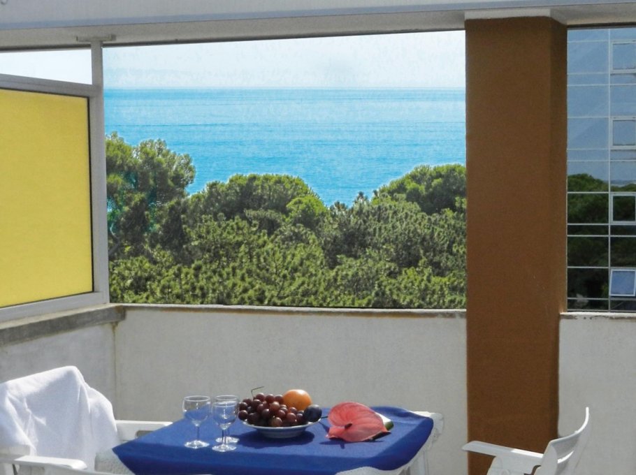 Appartment on 5. floor with lift, 1 room with double bed and single bed, livingroom with area cooking, bathroom, equipped large balcony, TV, ventilator, micro-wave, parking place numbered.