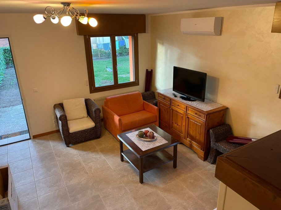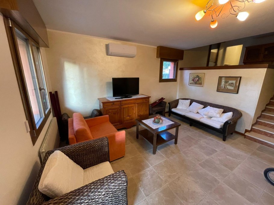 Apartment composed by: one double bedroom, three bedrooms with two beds, living room with sofa, kitchen, two bathrooms with box shower, tv, air conditioning (extra if used), washing machine, garage, private garden, 400m to the beach.