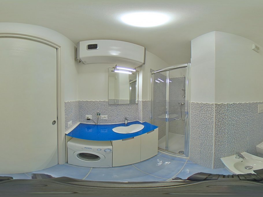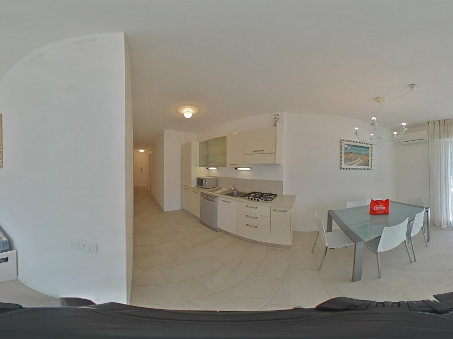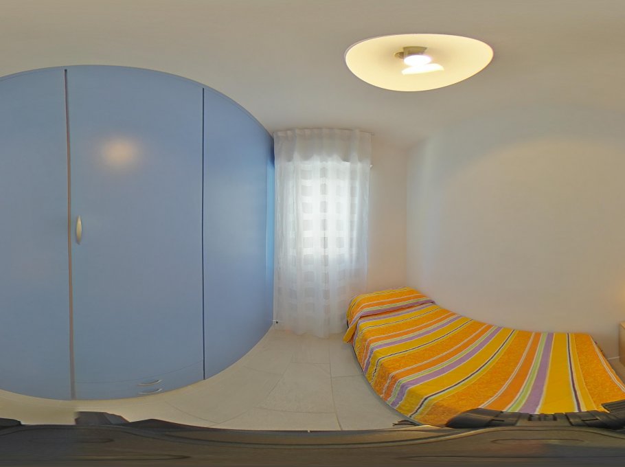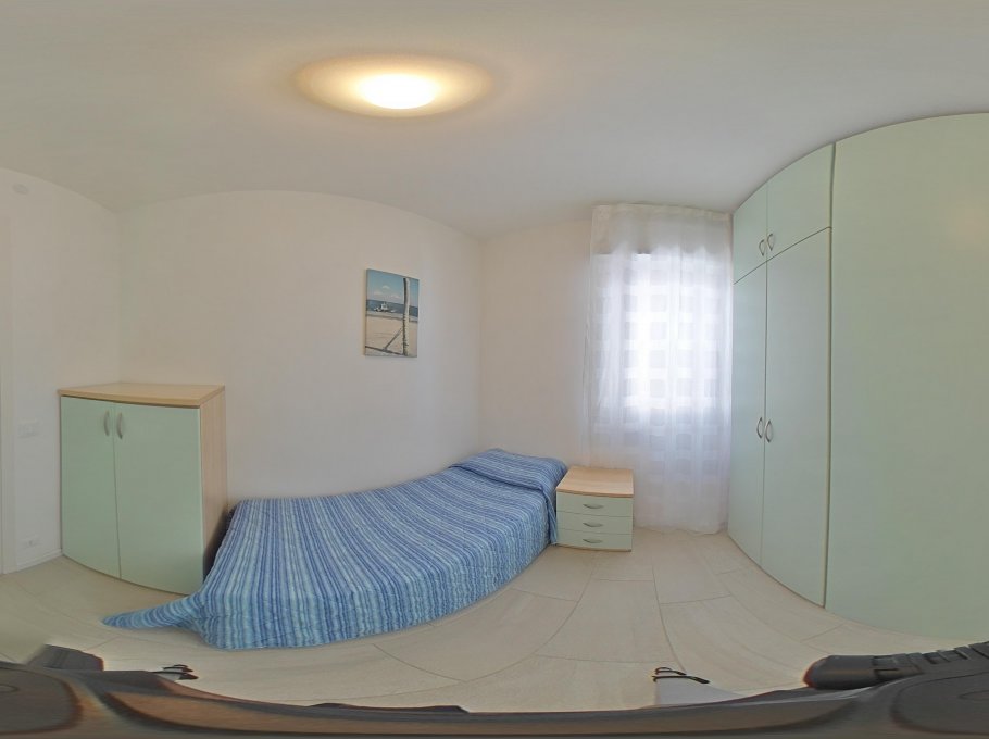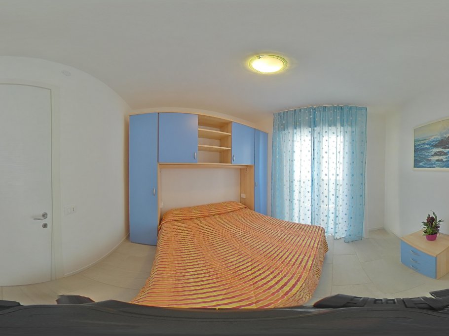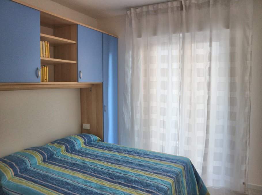Comfortable accomodation consisting of a living room with kitchen area and double sofa bed, tv, microwave, dishwasher and washing machine, a double bedded room and two single bedded rooms, bathroom with shower box/bidet/wc, large furnished terrace with beautiful frontal sea-view. Air conditioning and final cleaning are included in the price. In the rental rules of the agency are mentioned all the above written service’s ways. Parking place size: 5,00x1,95x2,00