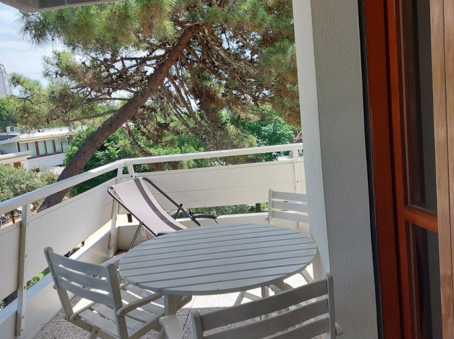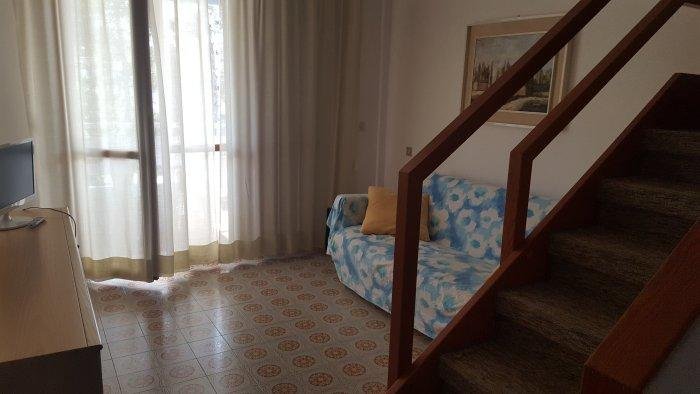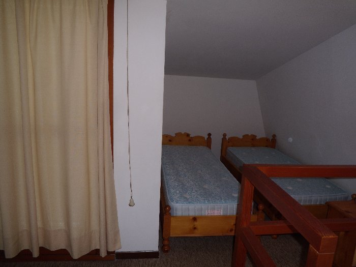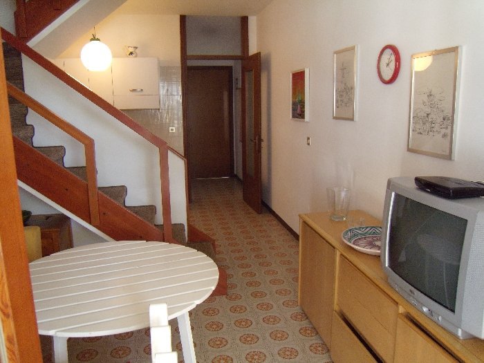 entrance, living/kitchenette with double divanbed, bath with shower and balcony; upper floor doble bed and 2 single beds, balcony with partial sea-view