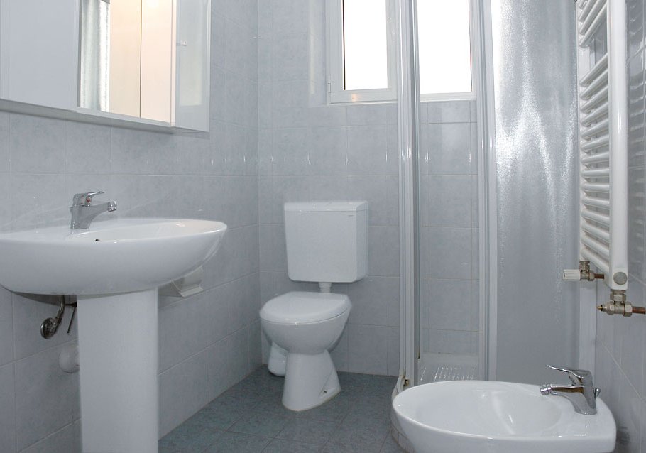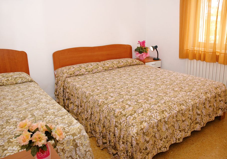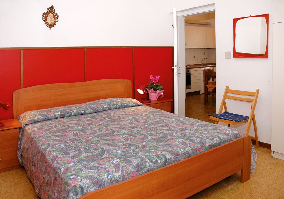 Apartment on the ground floor,so composed: a bed-room with 3 beds-a bed-room with a double bed-a living-room with a double divan-bed,kitchen,a bath-room with shower,covered terrace.TV and washing-machine.