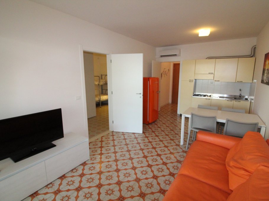 Type B1: renovated apartment with living-dining room with sofa bed and cooking corner, 2 bathrooms with shower/WC, spacious bedroom with double bed and bunk bed divided by a sliding door, great corner terrace. For 4-5 people. Ideal for families with children - air conditioning unit - Washing machine. Energy class D (162.18/140.34 kWh/sq m year). CIN: IT030049C2JXWX5E9H, IT030049C2H9JJXIMH