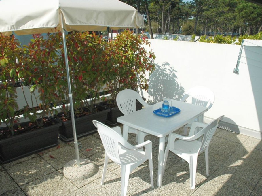 Comfortable residence in excellent position, in the shopping centre of Lignano Pineta and in a green area, with public limited parking place, at about 150m from the beach. The pictures are indicative.