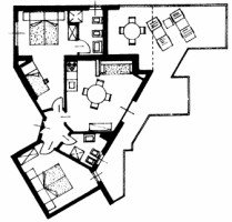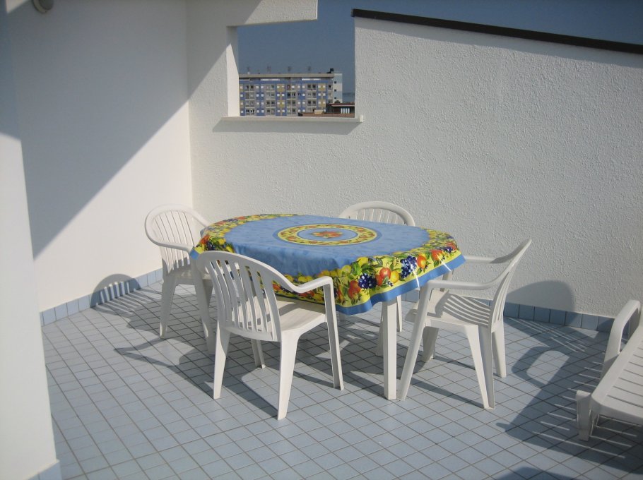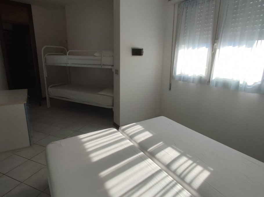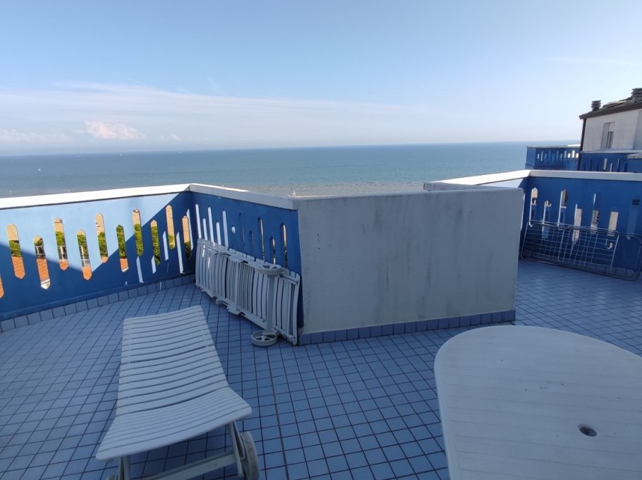 EPSILON attic on 8th floor with lateral sea view, with 1 double sleepingroom, 1 sleepingroom with double- and bunk-bed, single couch and kitchenette in the livingroom, 2 bathrooms with shower, one huge balcony, and numb. car-park.