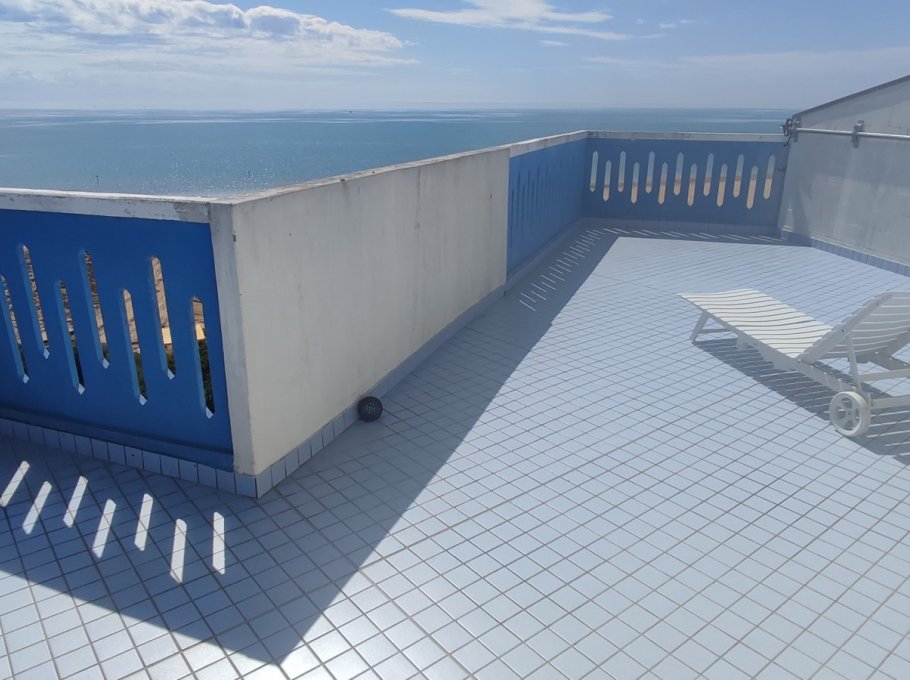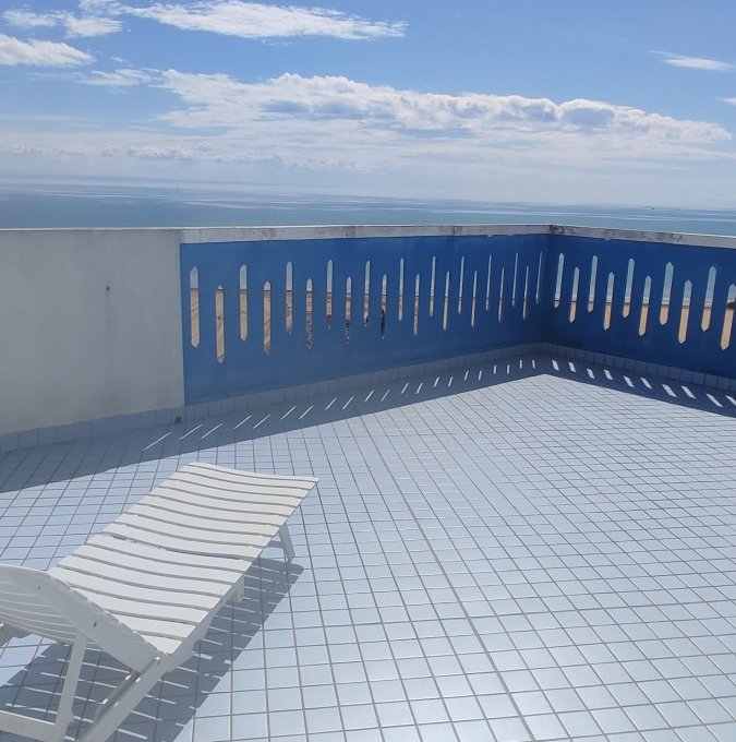 TAU on 8th floor, attic in front of the sea with one sleepingroom with double- and single-bed, doublecouch and kitchencorner in the living-room, bathroom with shower box, great balcony to the sea and numb. car-park.