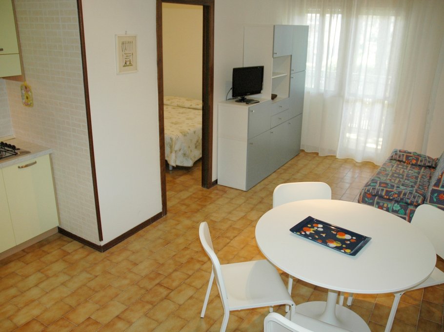 Type B: living-dining room with sofa bed, cooking corner, 1 double bedroom, 1 bathroom with shower, balcony with garden furnishings. For 2-4 people. Ideal for families with children - with air conditioning. Energy class D (111.88 kWh/sq m year). CIN: IT030049C26ZPMR6BH