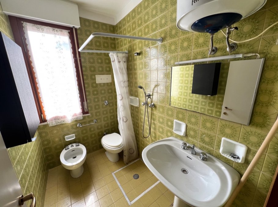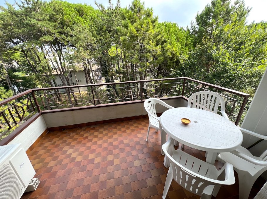 Residence in a quiet garden, the complex has a swimming pool, elevator and caretaker. Apartment on the third floor consists of 1 double, 1 room with 2 beds, living room , kitchen, 1 bathroom, TV, air conditioning, terrace, 4 beds. Distance from sea m. 300