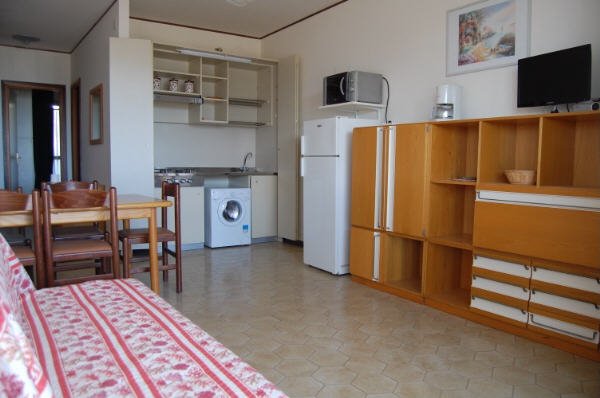 Spiaggia - Type C4-6pers.1st floor - Living-room with sleep-divan - kitchenette with fridge,freezer,washing mashine - 1 double room - 1 bedroom with two single beds - bathroom with shower-box - one balcony with sea-view and one balcony towards the courtyard - ceiling fans -
