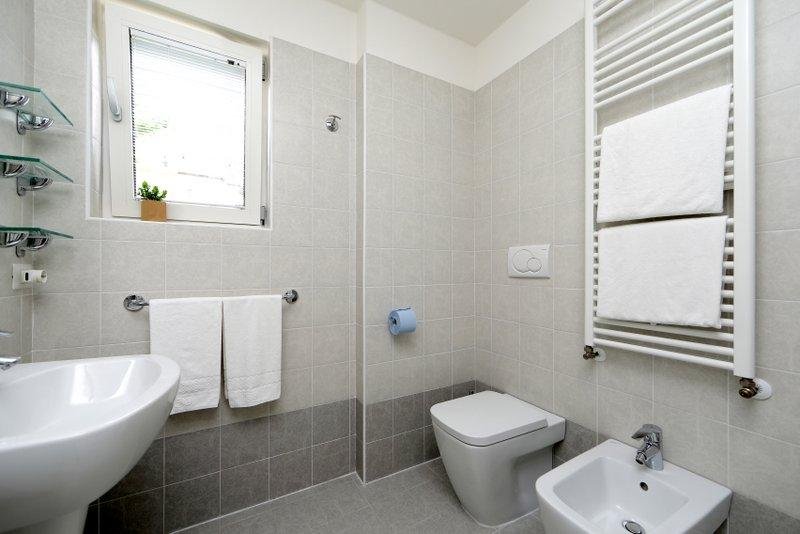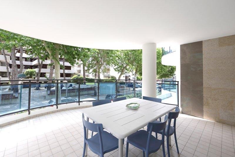 In the living area there is a large open space consisting of a kitchenette and living room with sofa bed. The sleeping area includes a double bedroom with bathroom, a twin bedroom and the main bathroom. Both bathrooms have a shower. To enjoy the sea breeze, you have the 25 m2 terrace and two small bedrooms terraces.The apartment is equipped with all comforts like: conditioned air, heating, dishwasher, washing machine, microwave, safe, dishwasher, free Wi-Fi. Each apartment has a reserved parking space and bicycles available.
