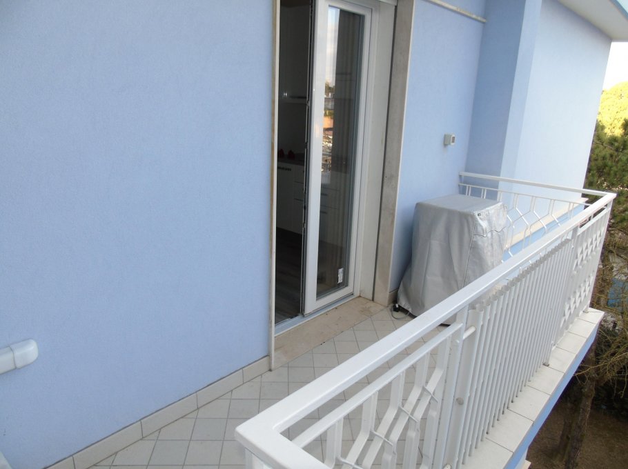 Apartment in Lignano Pineta, composed by: one double bedroom + bunk bed, livingroom with sofa, kitchen, bathroom with shower, terrace, 3^ floor , parking place, air conditioned, 500m to the beach.