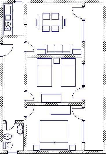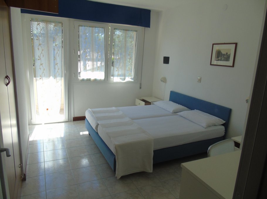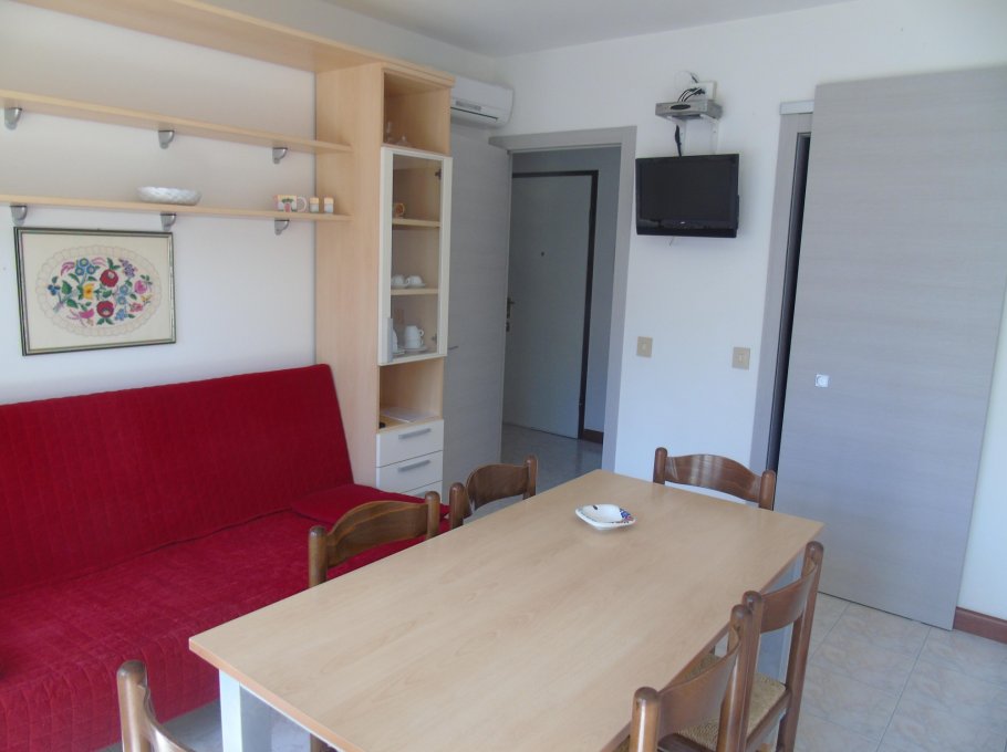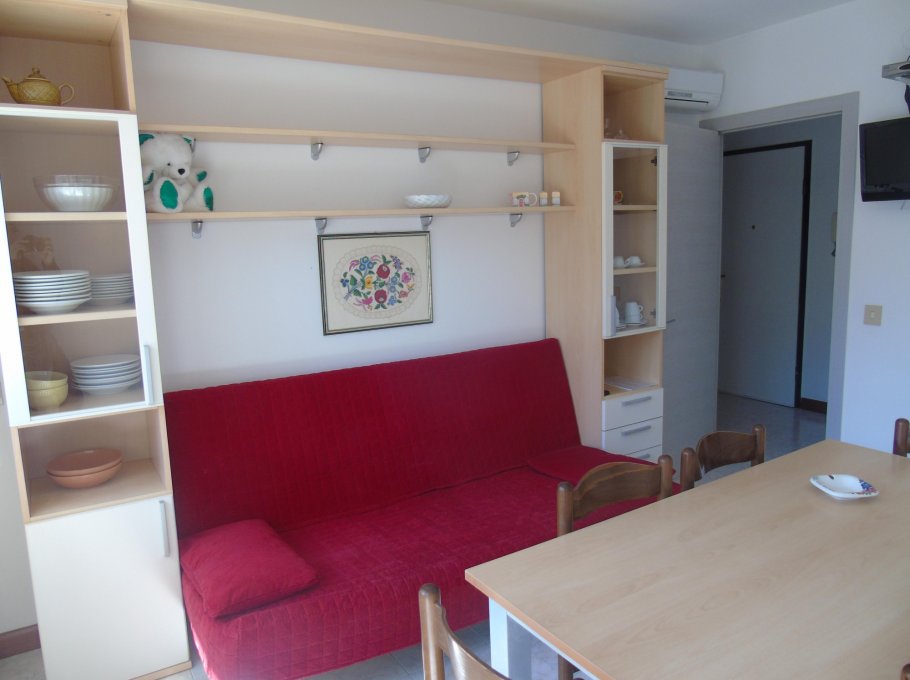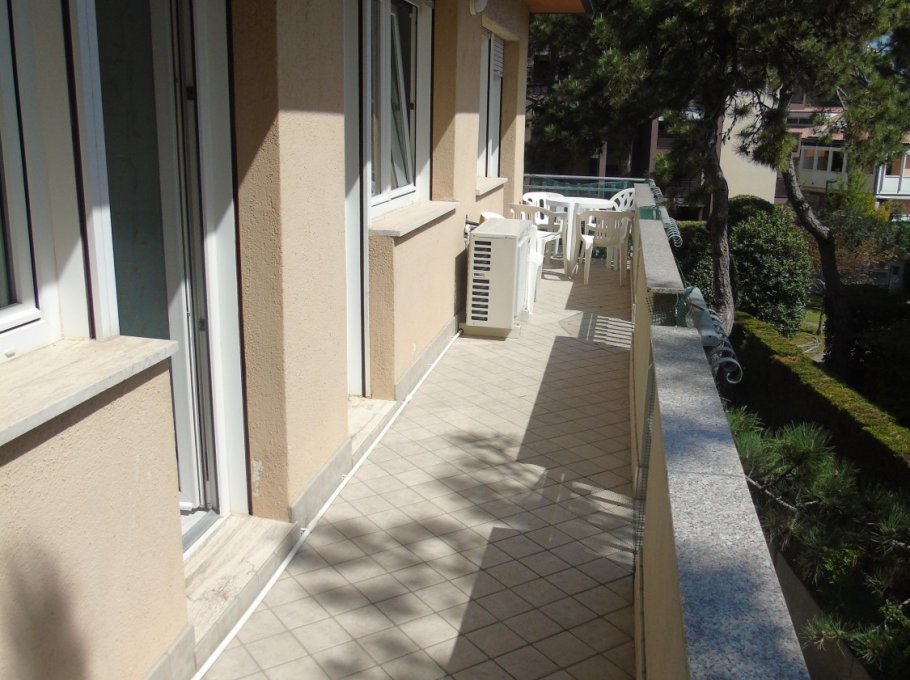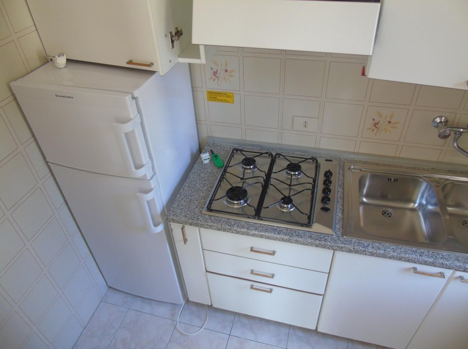 Apartment with two double bedrooms, living-room with single divan-bed, kitchen, bathroom with box shower, terrace, garden, parking, II floor.