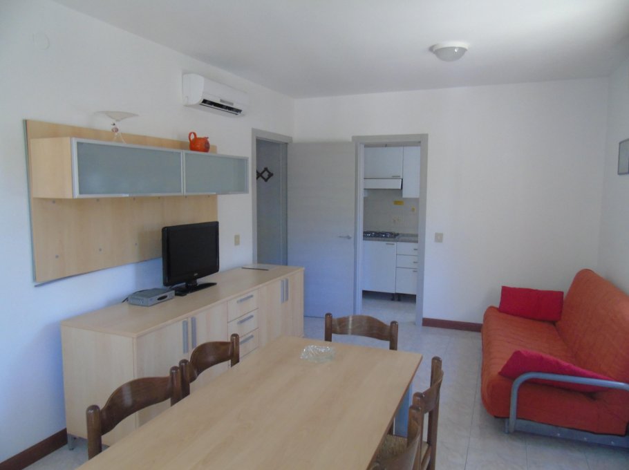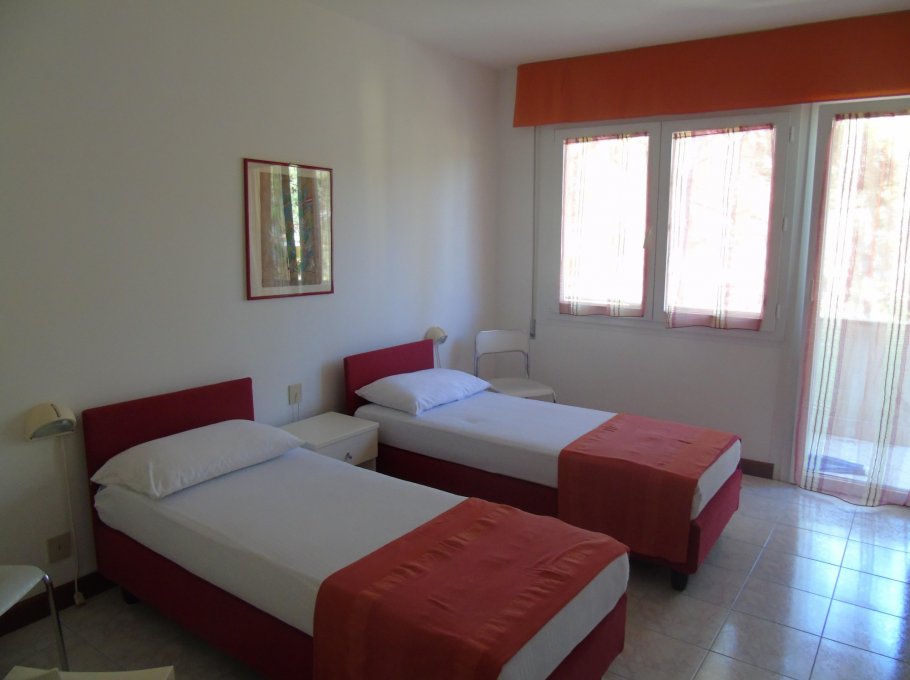 Apartment with two double bedrooms, living-room with divan-bed, kitchen, bathroom with box shower, terrace, garden, parking, II floor.