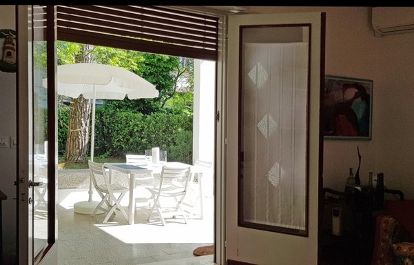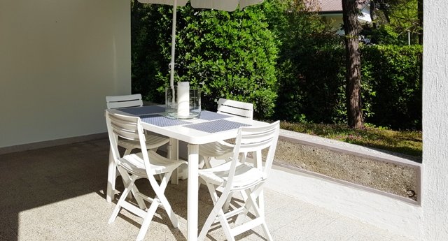 appartamento al piano terra in una casa con quattro unità, in una zona molto tranquilla, nei pressi del centro di Lignano Pineta. L'unità è composta da soggiorno, angolo cottura, due camere da letto, bagno finestrato con doccia.