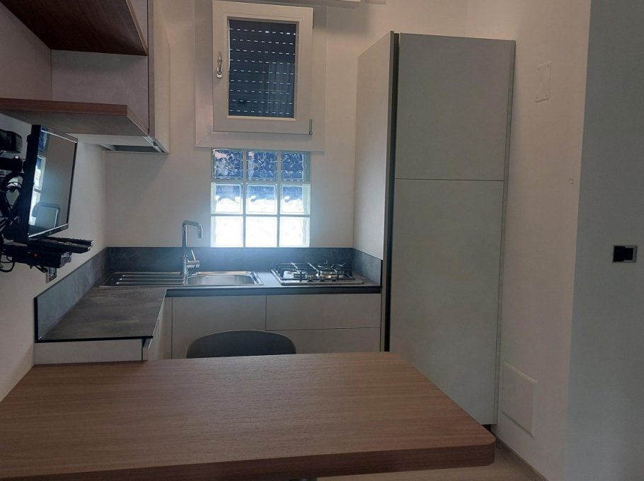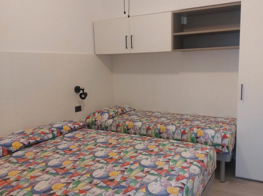 Good furnished apt. on 1st floor with common big balcony, apt with one bedroom with 3 beds, kitchen with a single divanbed, bath with shower.