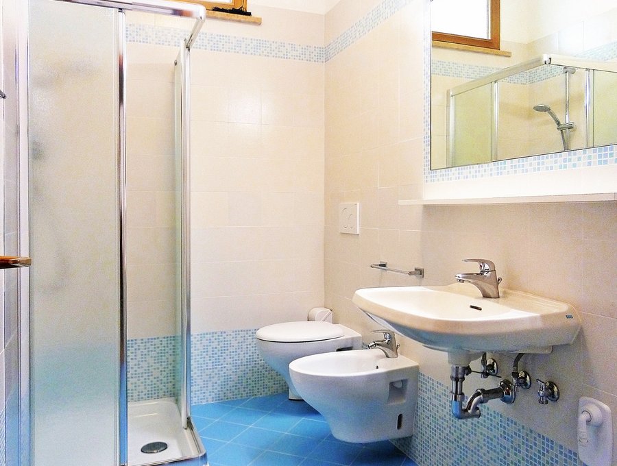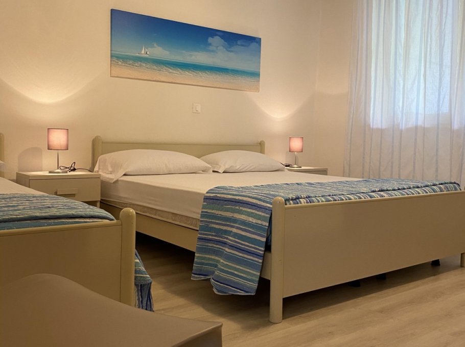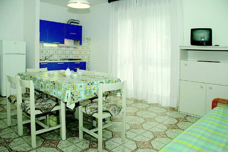 Type B - 3/4 persons - Apartment on ground floor, composed of a bedroom with three beds, windowed bathroom with shower cabin, living room with sofa bed, television with satellite connection, a kitchenette with refrigerator from 240 lt (separate freezer) and microwave. Terrace and little portion of garden with table and chairs.