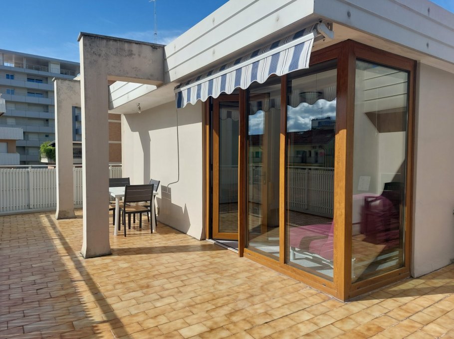 Apartment at 3rd floor without elevator with two bedrooms each with 2 beds,living with a double divanbed, kitchenette, bath with shower and big terrace