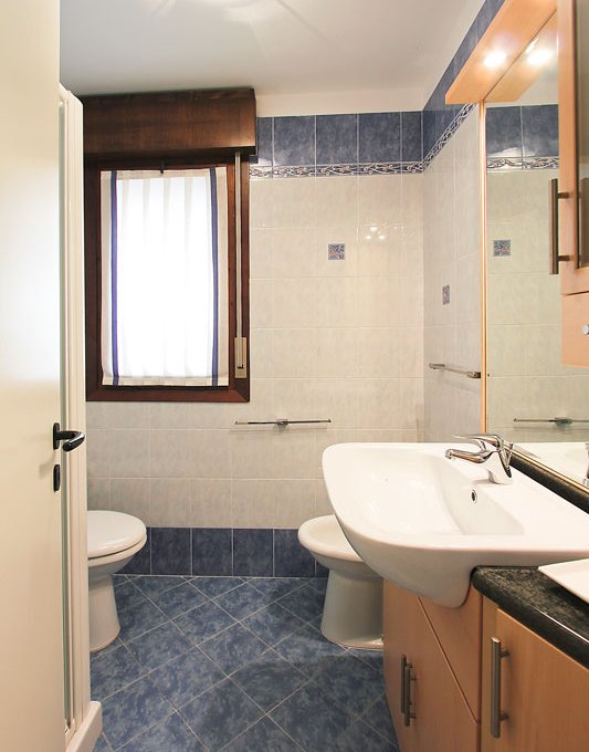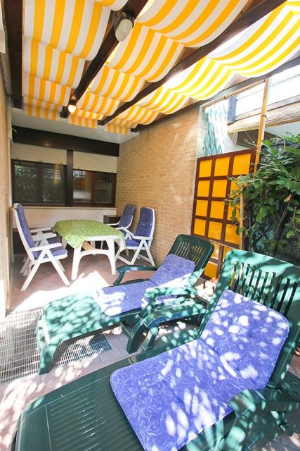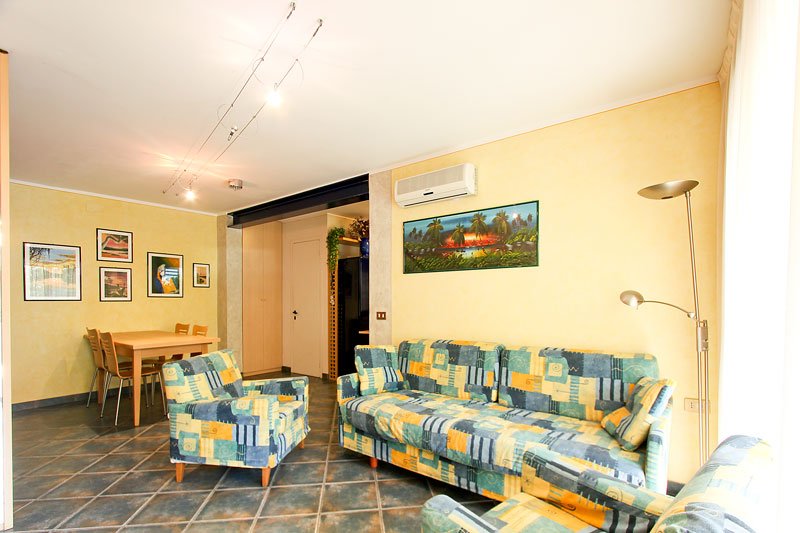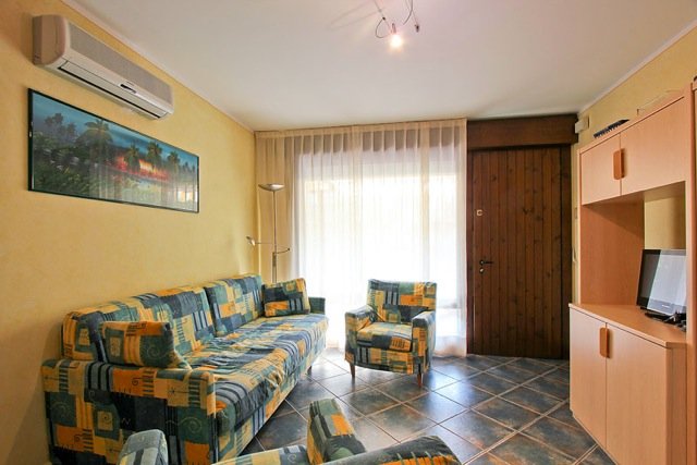 Very beautiful and well furnished row house Riviera 80 with: on the ground floor big living room with single sofa bed, kitchenette, bathroom with shower. On the first floor: double bedroom with balcony, windowed bathroom with box shower. In the attic floor: bedroom with 2 single beds (4/5 sleeping places). Fenced garden, 1 garage.