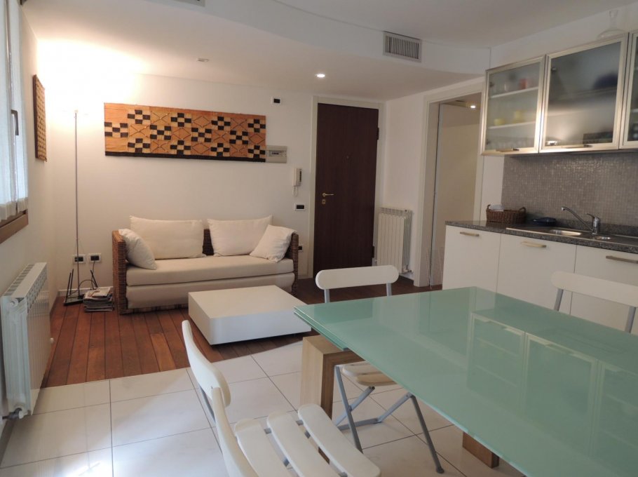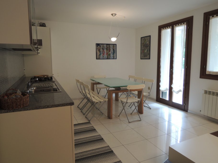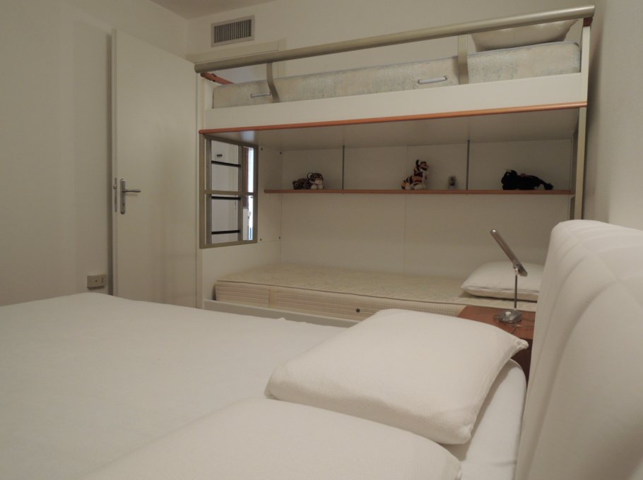 roomy apartment located on the ground floor, elegantly furnished, with large terrace on the ground floor for the exclusive use and two balconies on the up floor. It is composed by one double bedroom and bunk bed and bedroom with double bed and bunk bed, two bathrooms, both with box shower, spacious and bright living room with kitchenette; is equipped with air conditioning, washing machine and dishwasher. With reserved parking space.