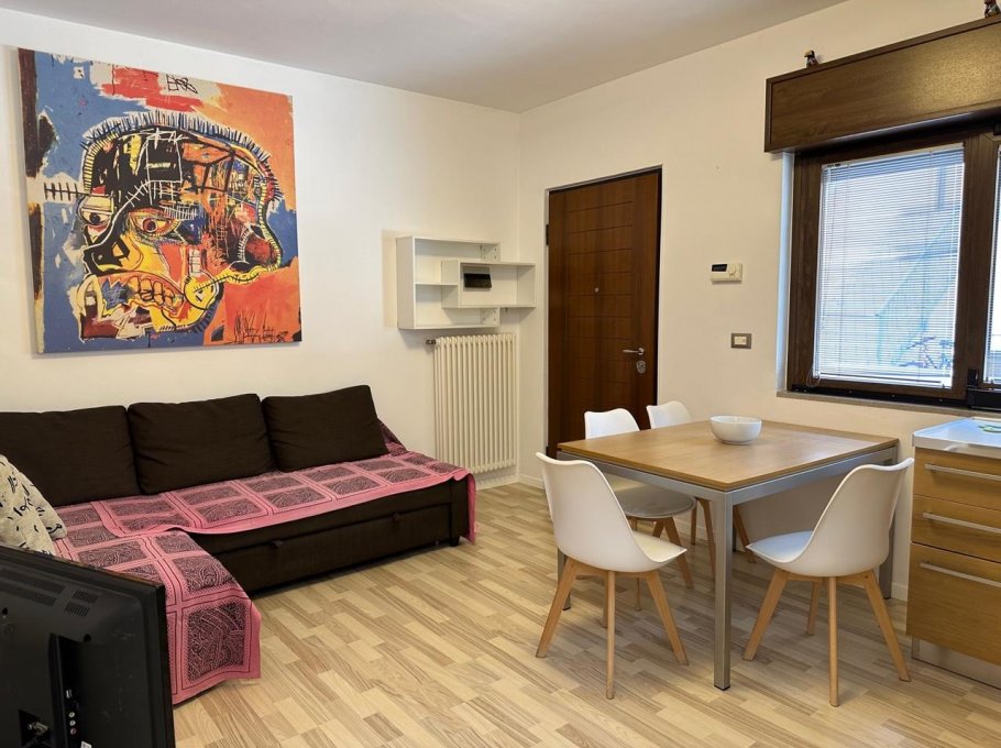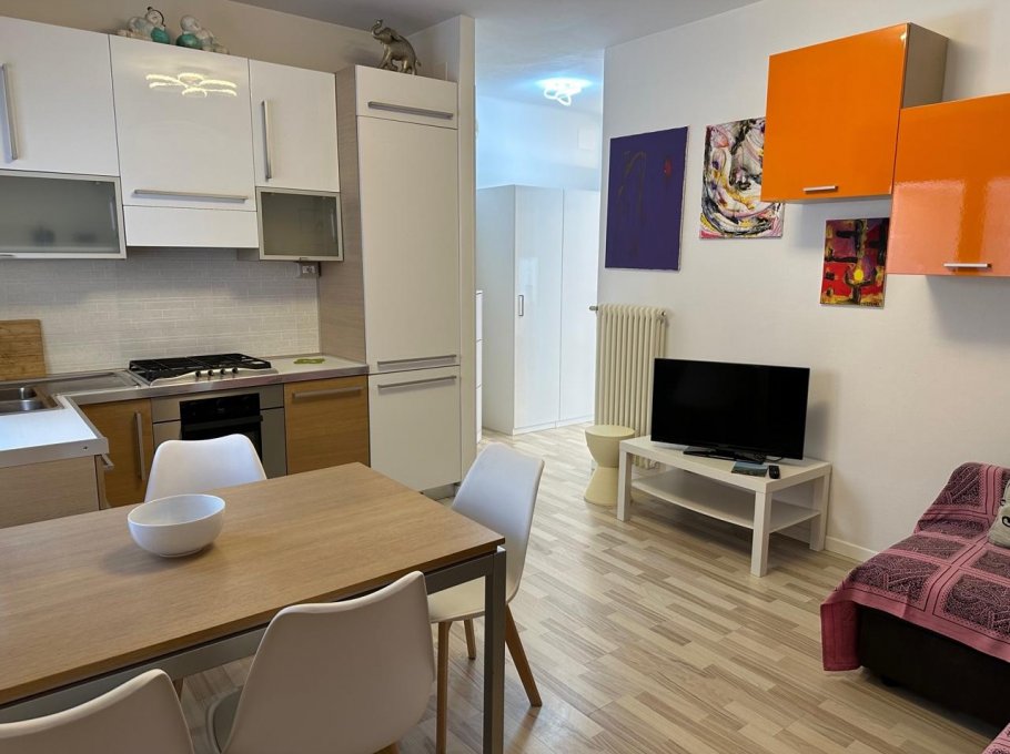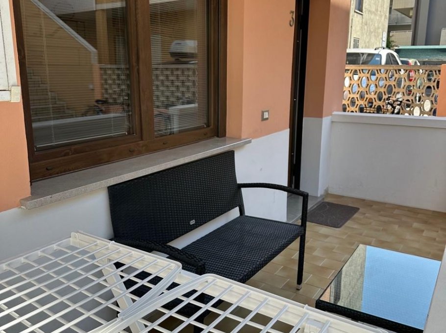 Renewed and comfortable apartment on the ground floor, in a building located in front of the beach (the apartment is on the back side); it is composed by a double bedroom, kitchen/living-room with sofa bed (two places), bathroom with box shower; there is air conditioned, washing machine, dish washer, tv and private parking place. Air condition is on request and costs € 30,00 per week; parking entrance from Via Aquileia 21