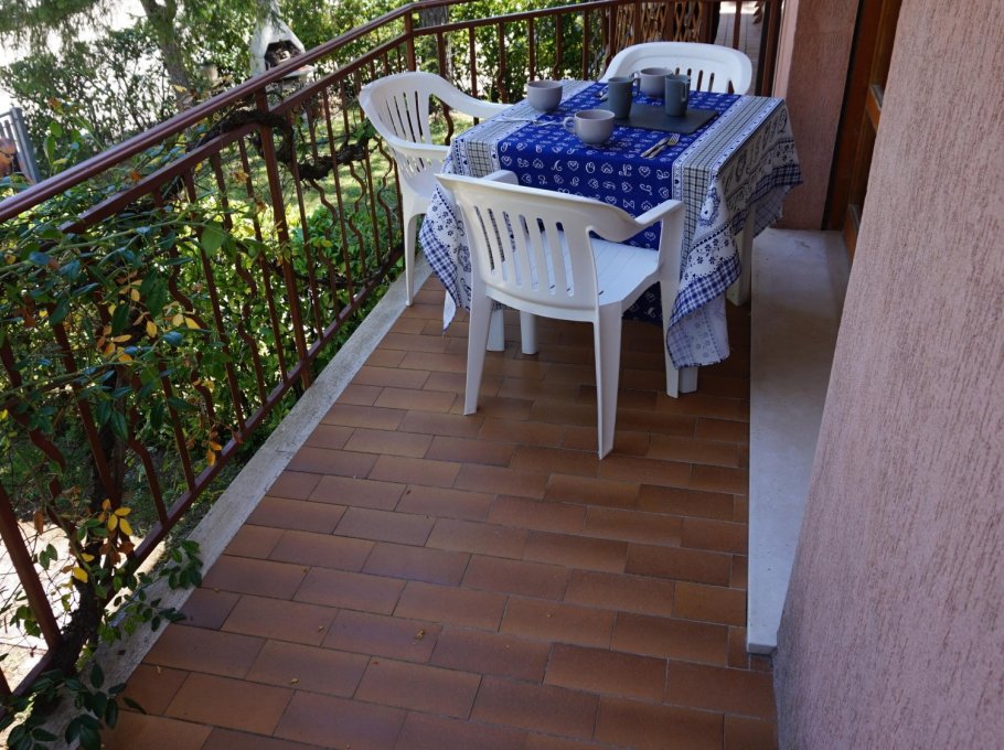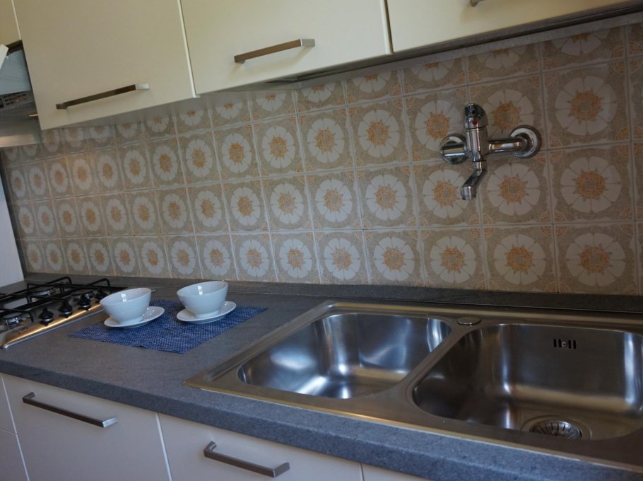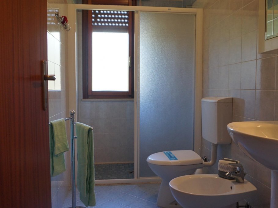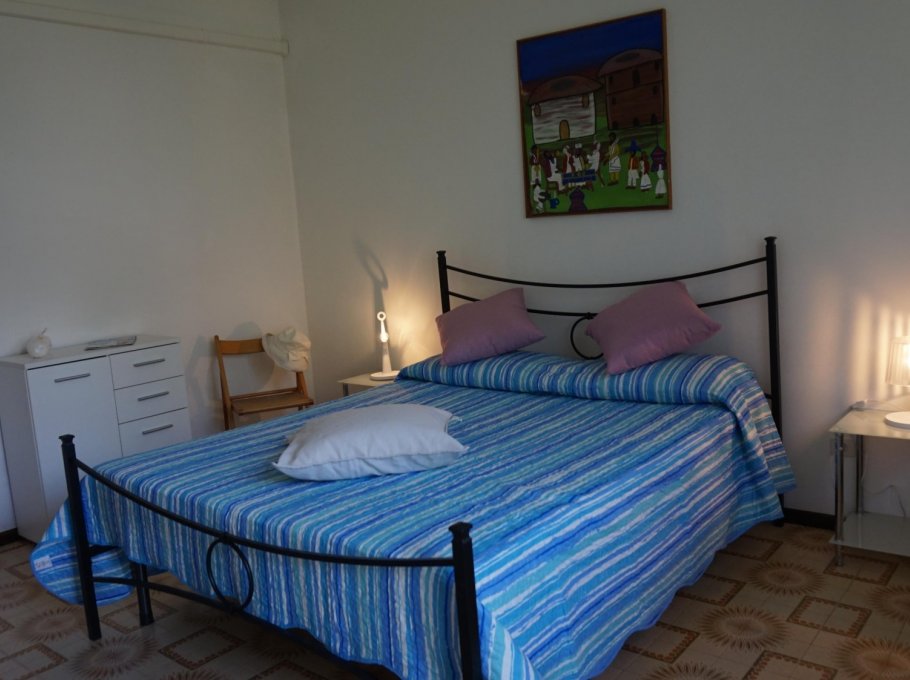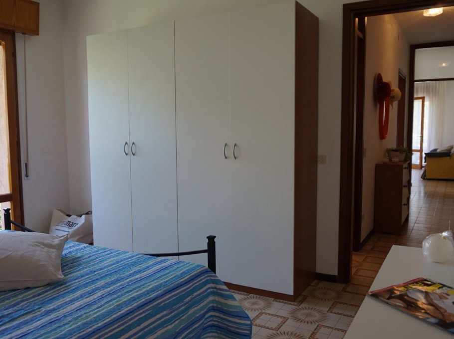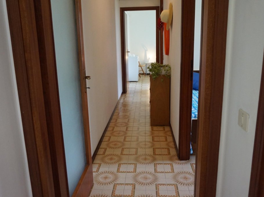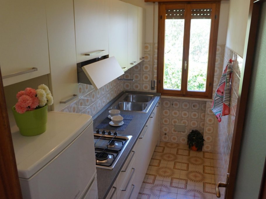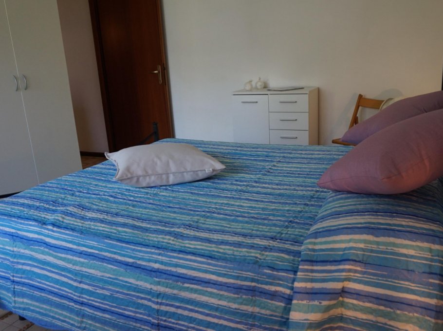 Three-room apartment on the first floor, consisting of living room with sofa bed and French window on the terrace equipped with table and chairs for six people, kitchenette, double bedroom, twin bedroom, renovated bathroom with shower and window.