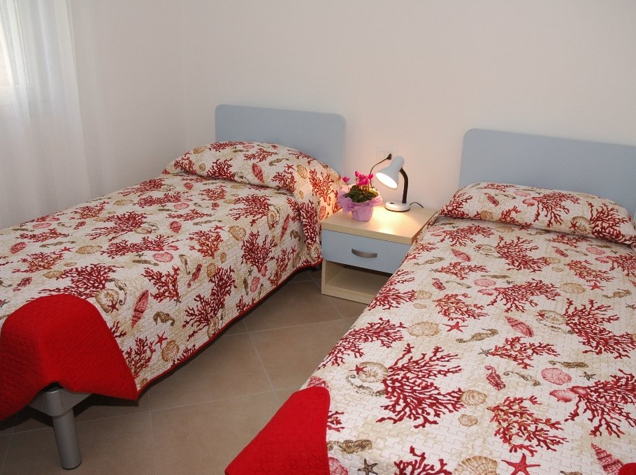 on the garden level living-dining room with sofa bed, kitchen, small patio with garden furnishings; on the first floor 1 double bedroom, 1 room with two beds, 1 bathroom with shower/WC; on the ground floor 1 room with two beds and 1 bathroom with shower/WC. For 6-7 people. Air conditioning unit - mosquito nets. Beach service (1 sun umbrella, 1 sun chair and 1 sun bed) provided on request and subject to availability. Energy class F (351.19 kWh/sq m year). CIN: IT030049C2TOWZ5BEE