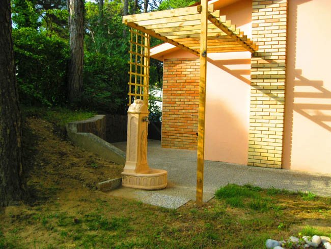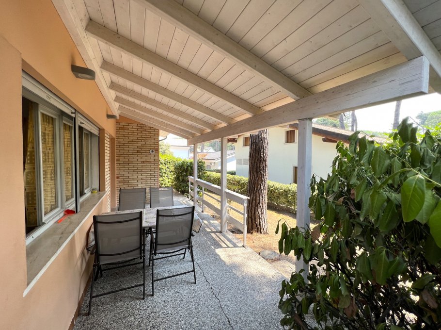 Detached villa with private garden in Lignano Riviera, surrounded by pine trees, near the beach, the spa and the center of Lignano Pineta, consists of 2 bedroom,, living room, kitchen, 2 bathrooms, TV , air conditioning, washing machine, large private garden with parking.