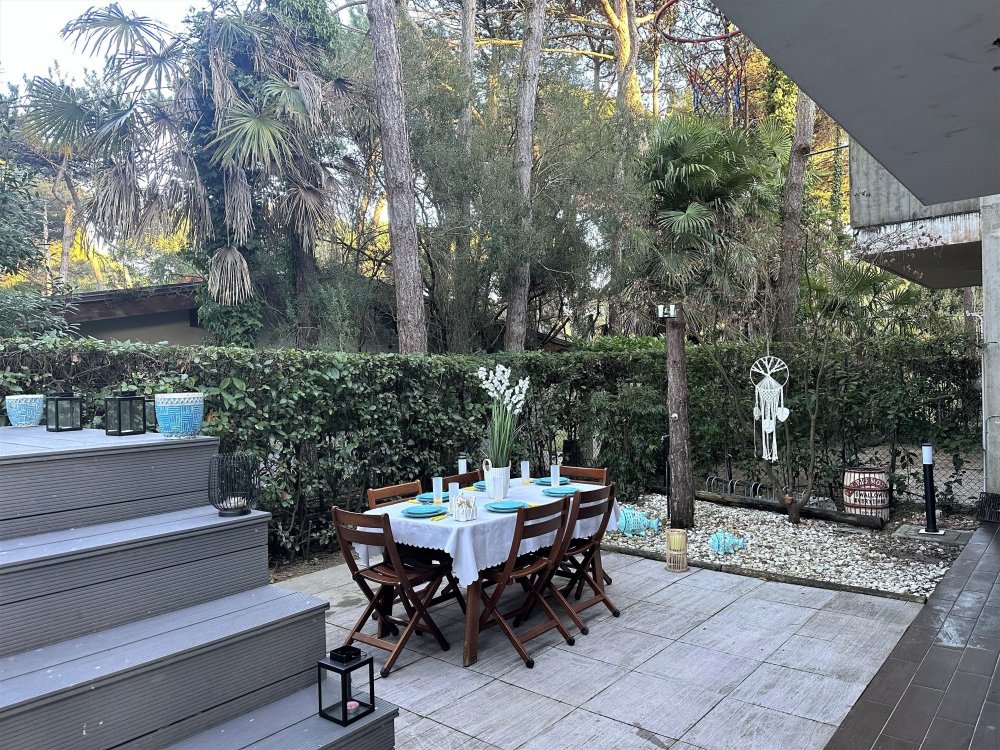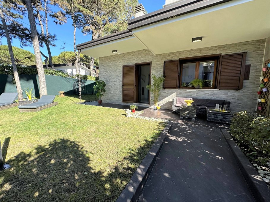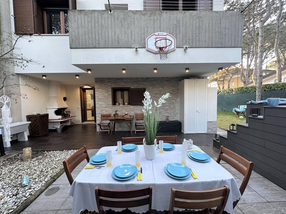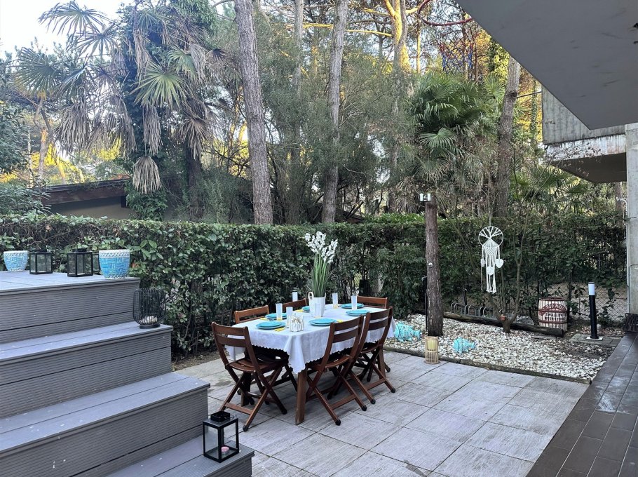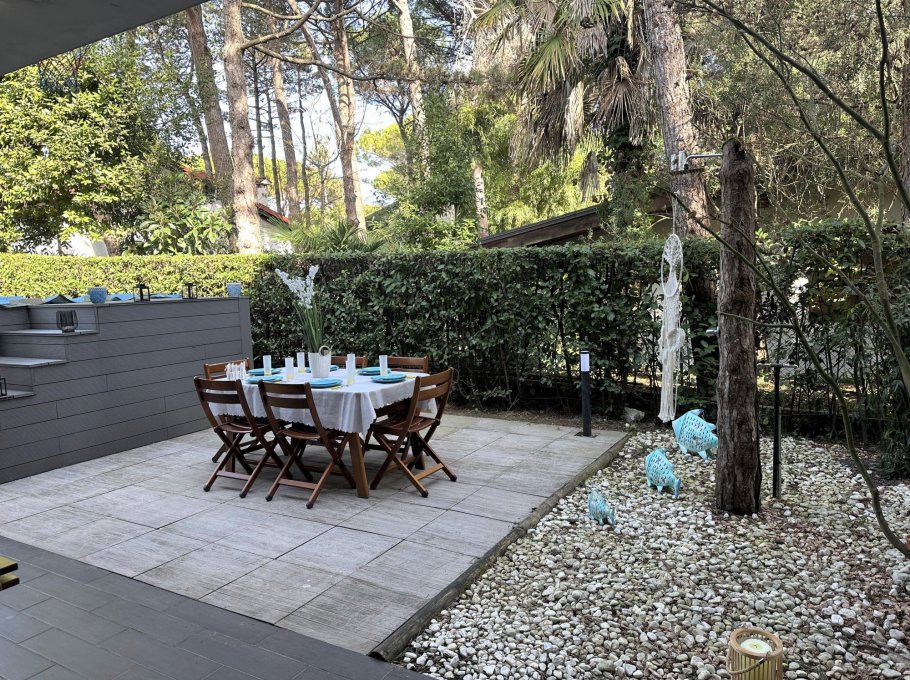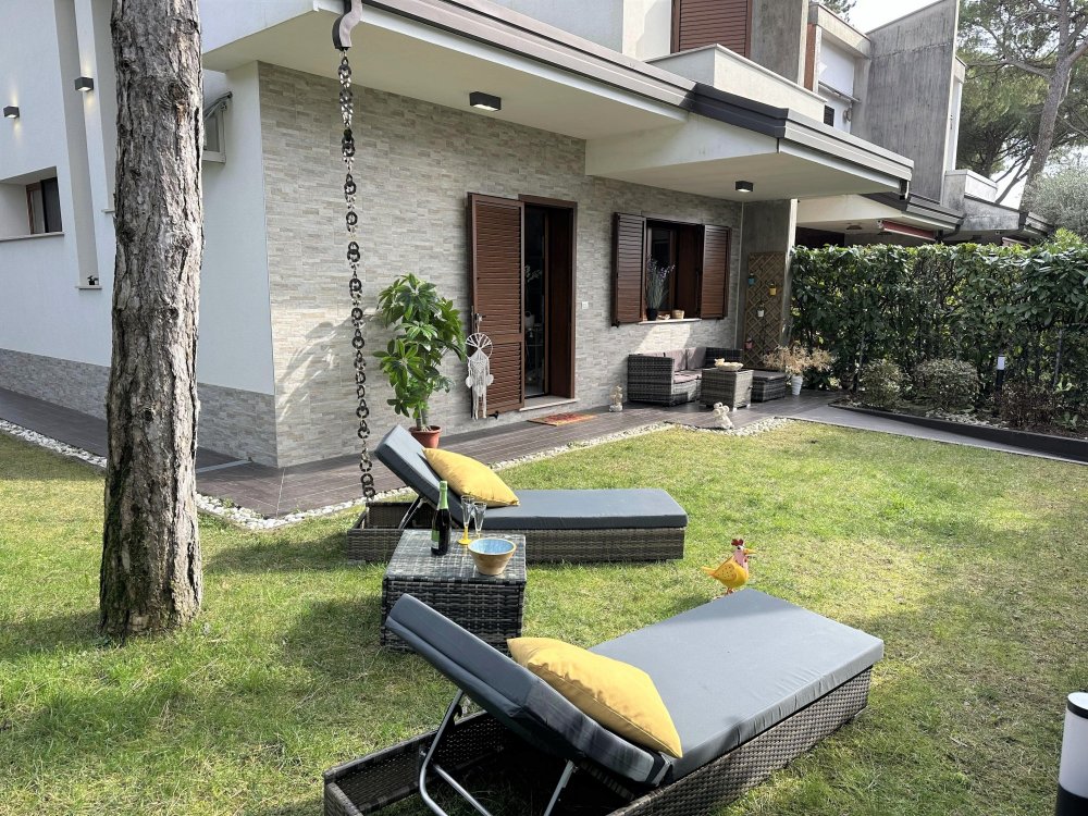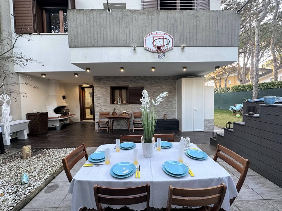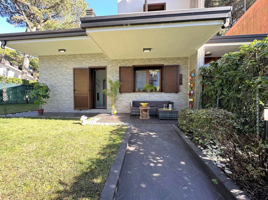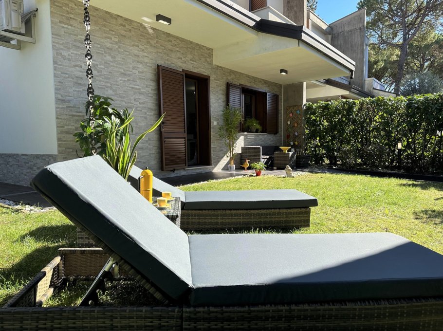 Terraced house nestled in the quiet of Lignano Pineta, surrounded by villas and tree-lined avenues, in a renowned residential area.