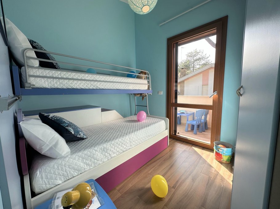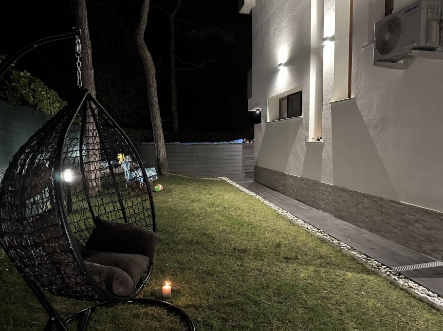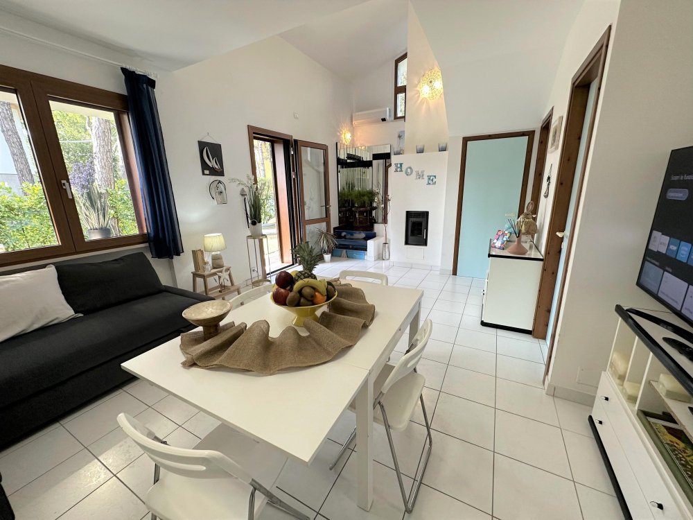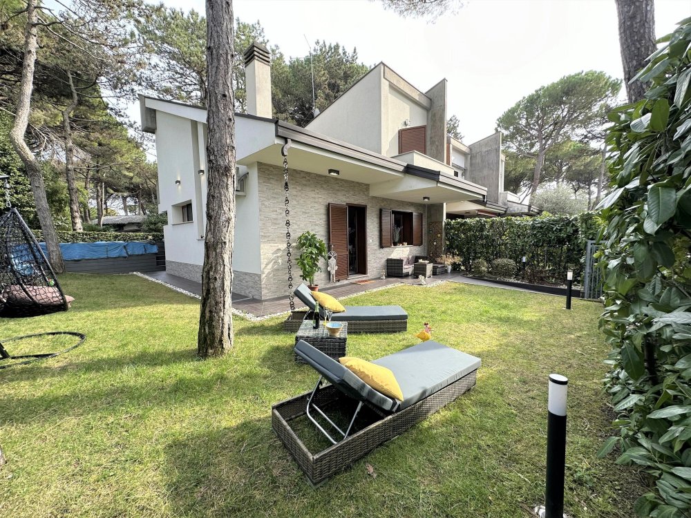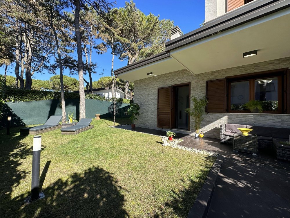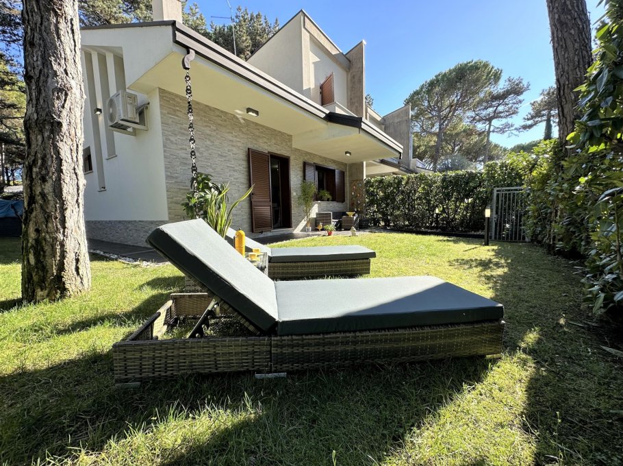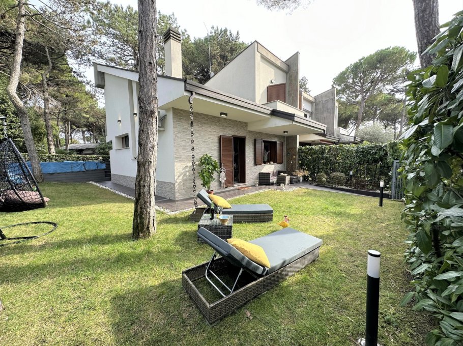 Exclusive terraced villa with private pool, immersed in the tranquillity of Lignano Pineta, surrounded by villas and tree-lined avenues, in a renowned residential area, accessible via a convenient footpath in Calle del Sorriso.