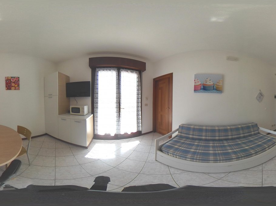 Modern apartments consisting of living/dining room with double sofa-bed and kitchenette, tv and microwave, double bedded room, shower box/bidet/wc and furnished terrace. Numbered parking space 200 far away from Viviana by parking in via Treviso. Air conditioning and final cleaning are included in the price. In the rental rules of the agency are mentioned all the above written service’s ways. Parking place size: 5,00x2,20x3,00