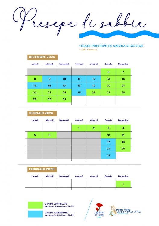 The event is organized by the Dome Aghe Savalon d’Aur Association in collaboration with the Municipality of Lignano Sabbiadoro and local associations.